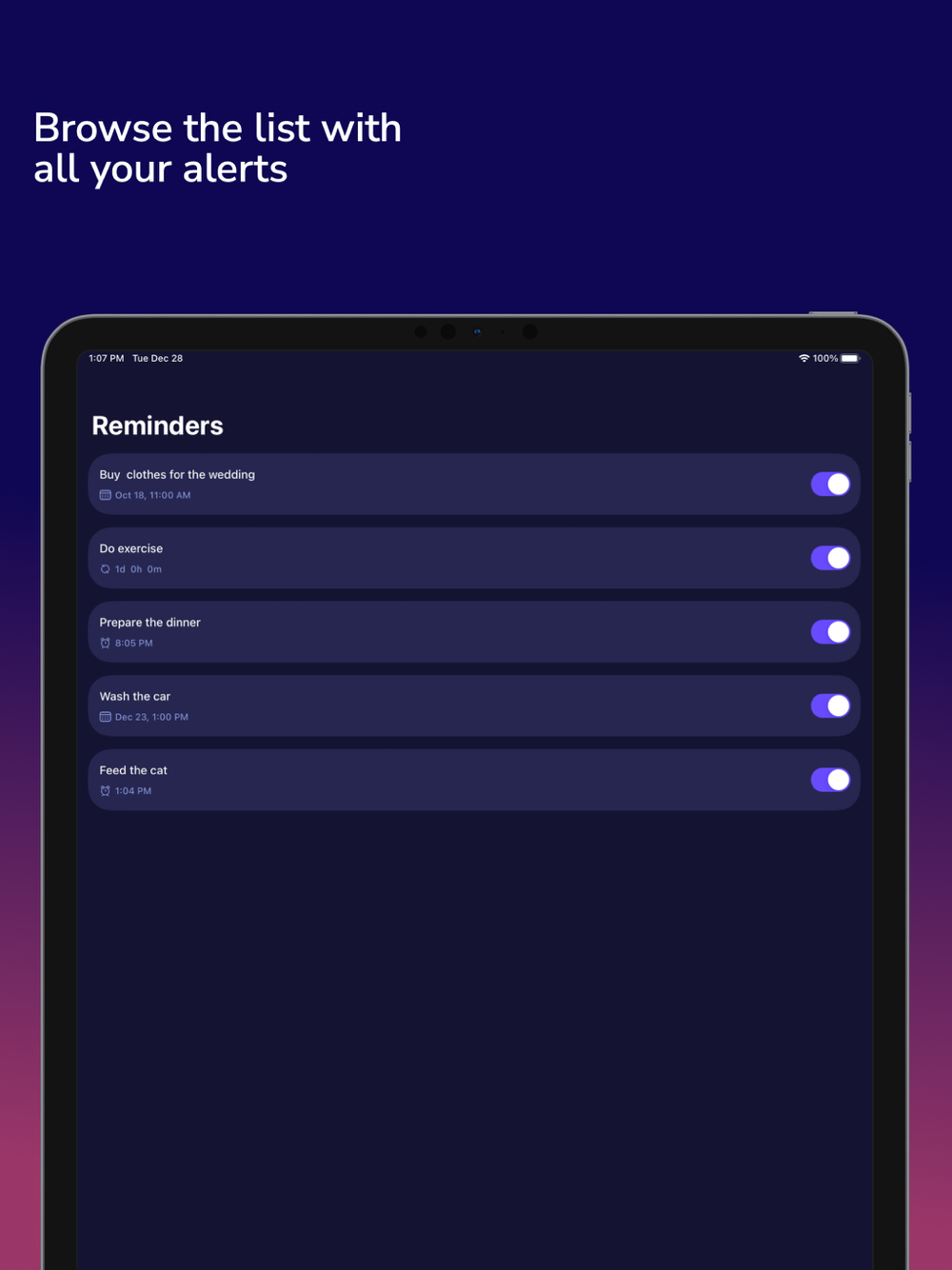 Also you can enable or disable your set alerts whenever you want, or delete them too