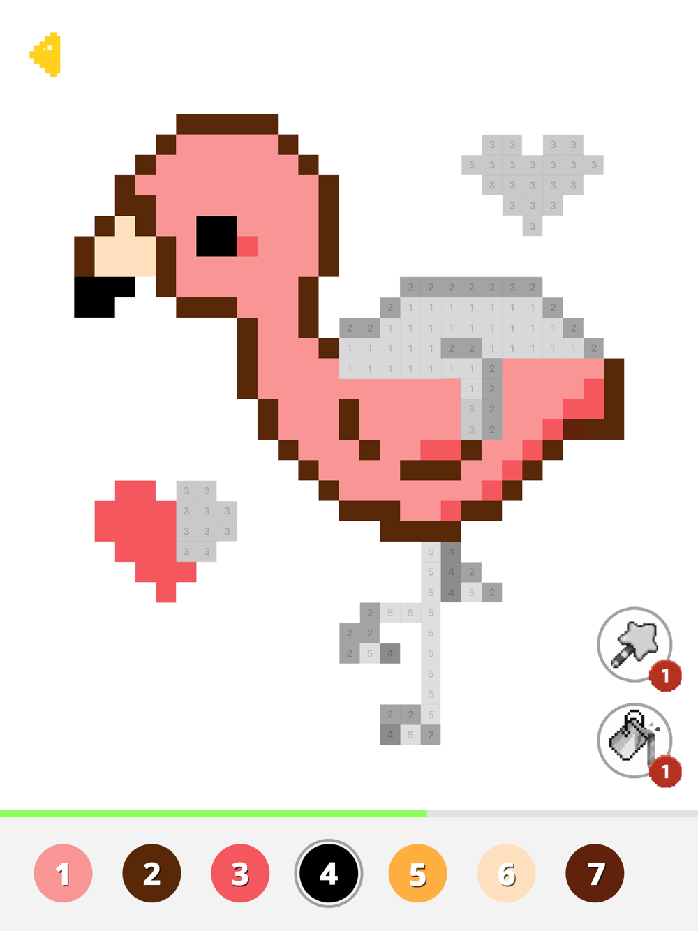 - Pick Color Bucket to quickly fill areas with colors or Magic Wand to paint by number a range of cells of the same color.