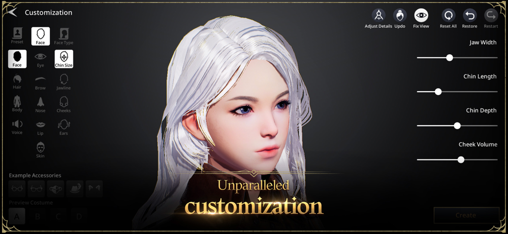 Make your very own Traha by customizing your character’s body type, facial proportions, skin, and more!