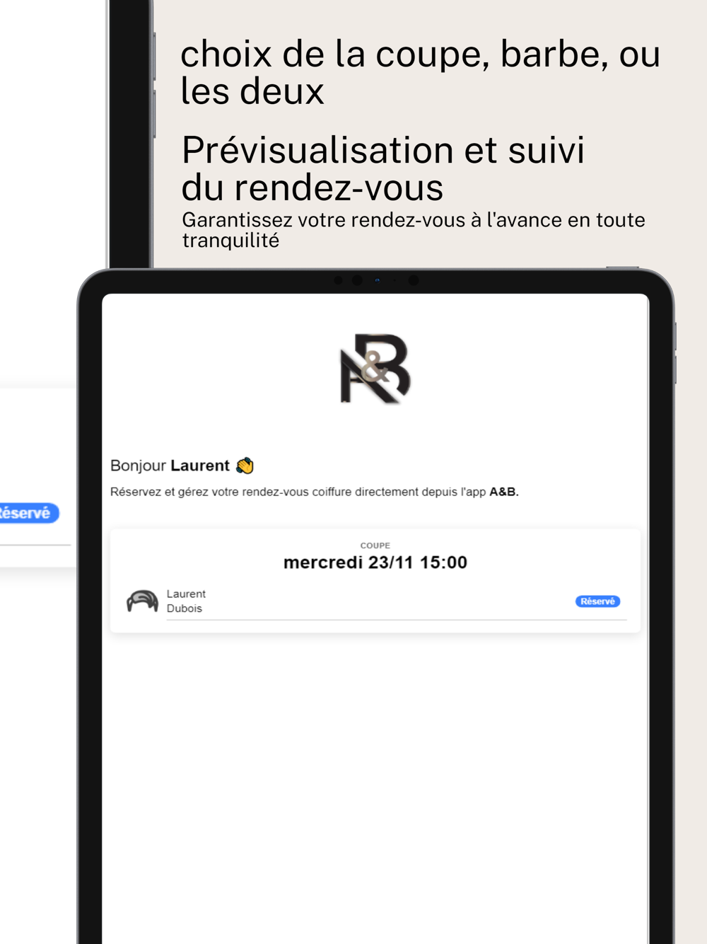 A&B est une application de prise de rendez-vous pour le salon de coiffure A&B Coiffure Barbier.
