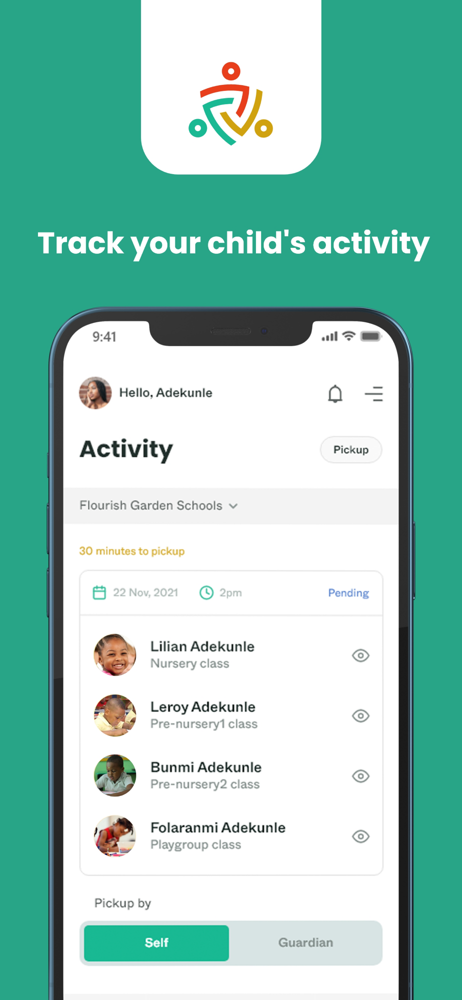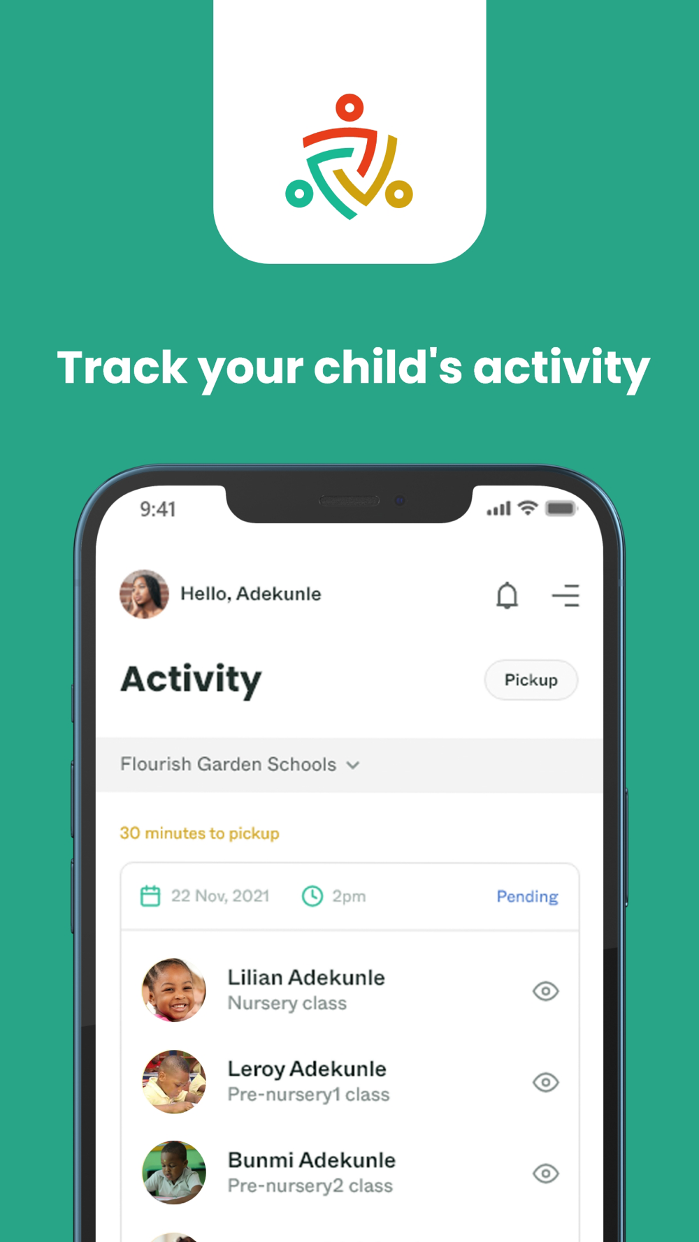 Parents install the TANDA SCHOOL SECURE APP from App Store (iOS). The app registers the children's details and the clock-in and clock-out times while using the biometric ID card on the TANDA102 device. In addition, parents also receive instant alerts and updates about their children's school on their mobile devices.