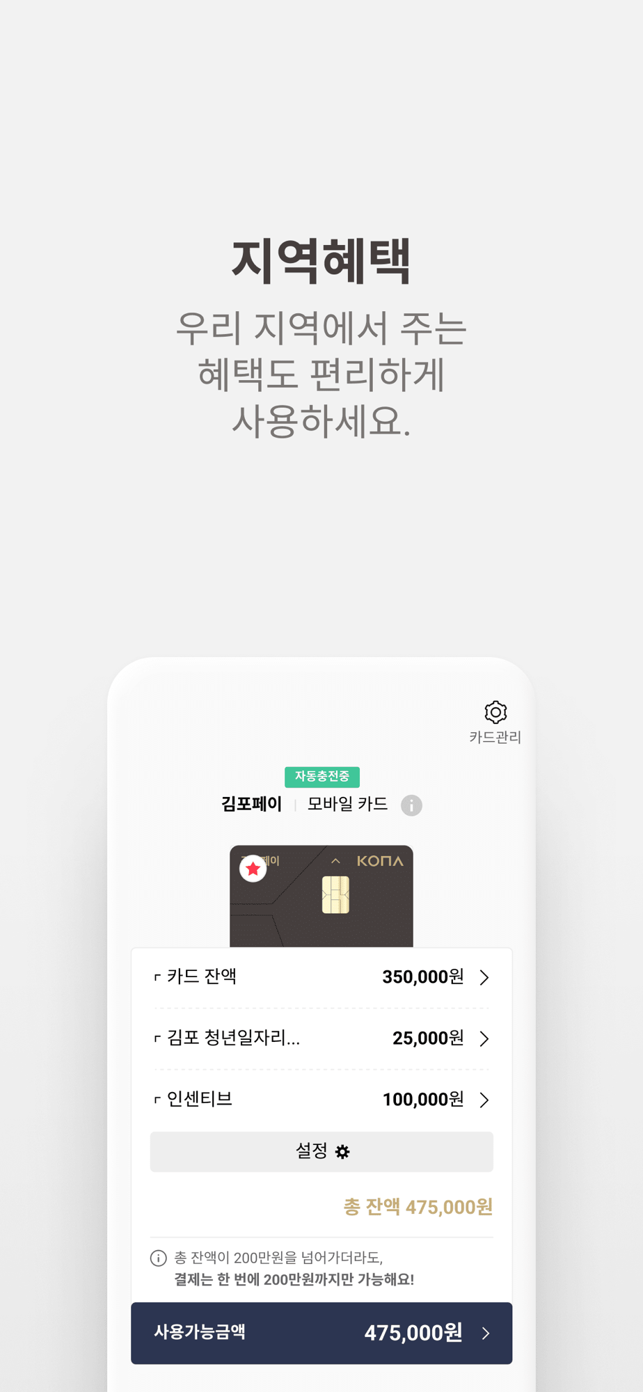 지역 경제 활성화를 위해 김포시가 발행한 지역화폐로, 김포시 지역화폐 가맹점에서 사용할 수 있습니다.