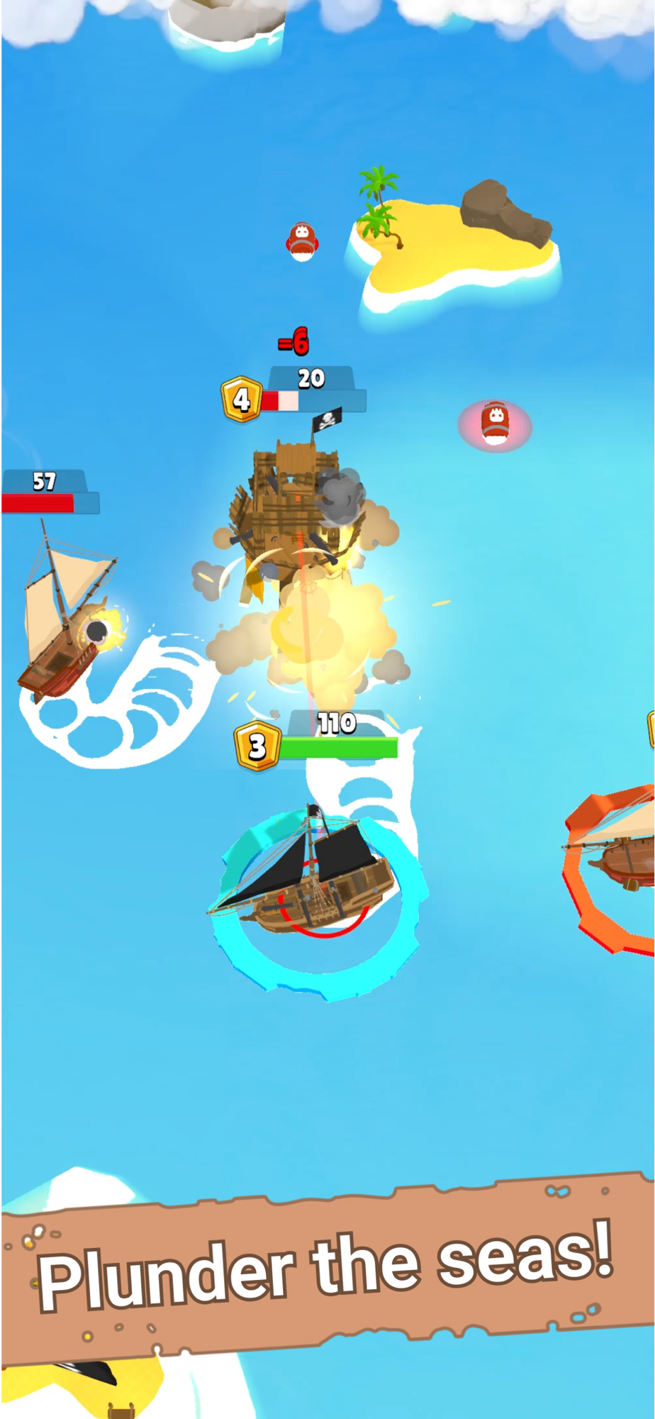 Travel from island to island, upgrade your ship and expand your crew, face pirates who dare to stand in your way, and be the first one to to get your hands on the many treasures of the seven seas !