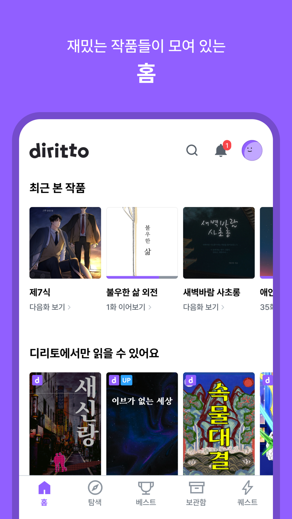 - 업데이트되는 작품들을 쉽게 찾을 수 있어요.