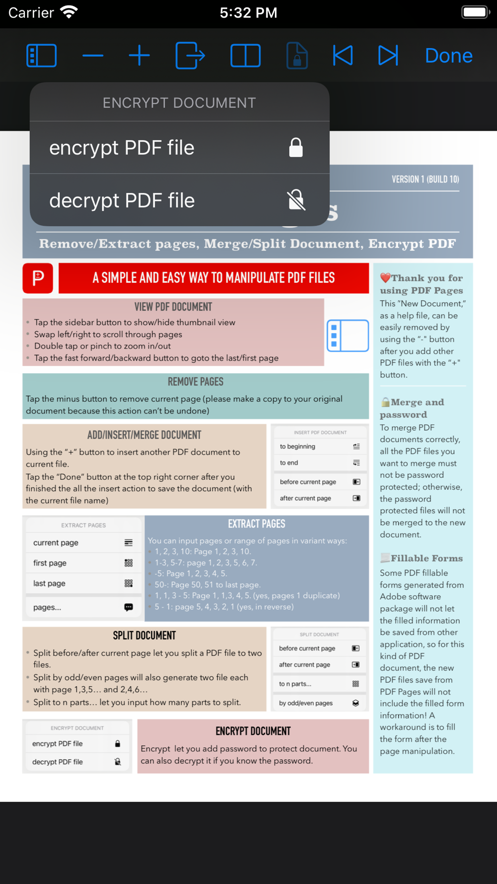 Tap the “Done” button at the top right corner after you finished the all the insert action to save the document (with the current file name)