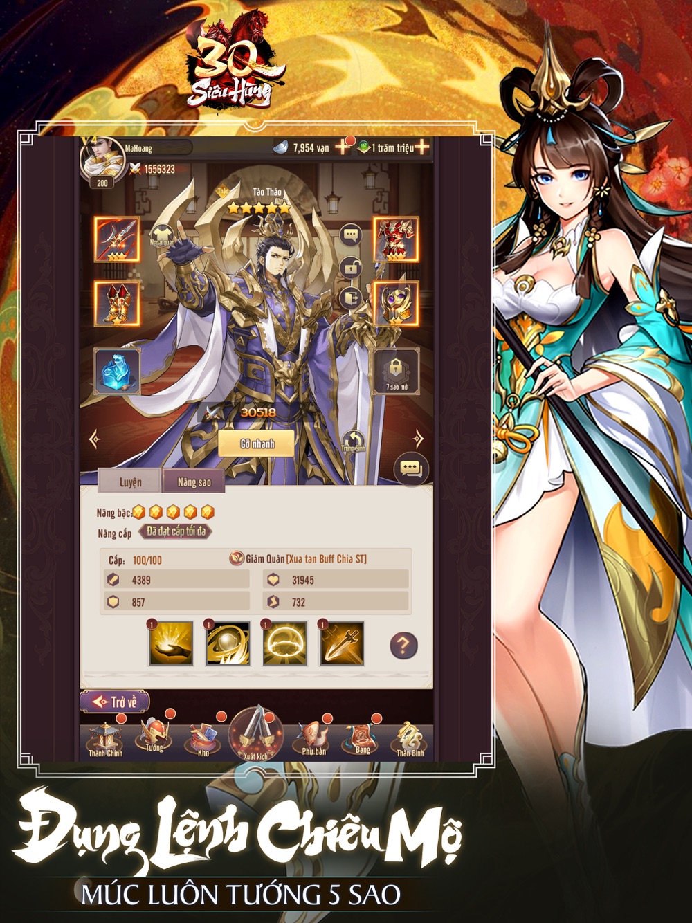 Đăng nhập liền tay, nhận ngay tướng 5 sao. Online 30 phút nhận ngay tướng 4 sao. Vượt ải thần tốc