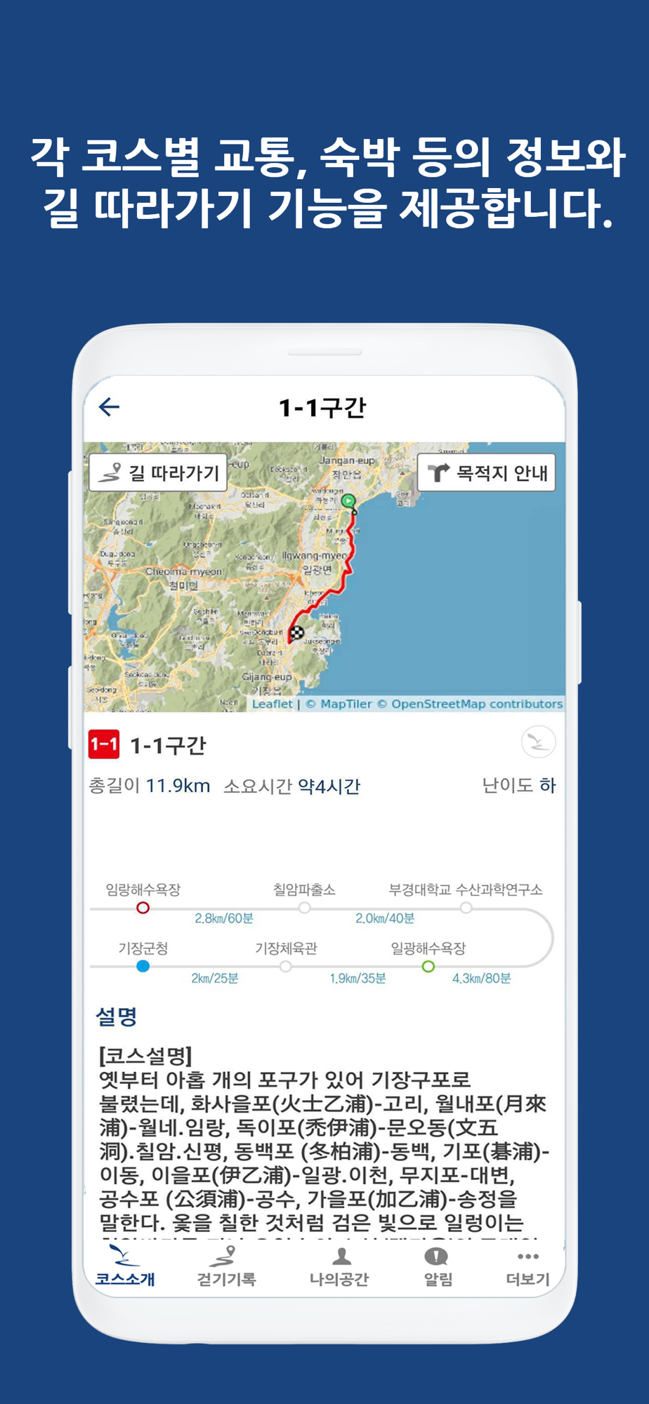 사포지향(바다, 강, 산, 온천)인 부산의 지역적 특성을 담고 있어 바닷가를 걷다보면 어느덧 산속이고, 산을 벗어나면 강이 있고, 몸이 노곤하면 온천이 반겨주는 부산에만 있는 길입니다.