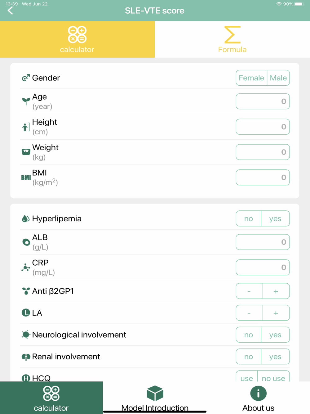 SLE-VTE score is a clinical prediction model to help physicians and researchers predict the risk of venous thromboembolism (VTE) in systemic lupus erythematosus (SLE) patients. This model is built and validated based on the Chinese SLE Treatment and Research group cohort (CSTAR). Logistic regression and least absolute shrinkage and selection operator were used to fit the model. The final prediction model (SLE-VTE score) included 11 variables: gender, age, body mass index (BMI), hyperlipidemia, hypoalbuminemia, C-reactive protein (CRP), anti-β2-glycoprotein 1 antibody, lupus anticoagulant, nervous system involvement, renal involvement, and hydroxychloroquine usage. We hope and welcome more cohorts to further validate and improve this model