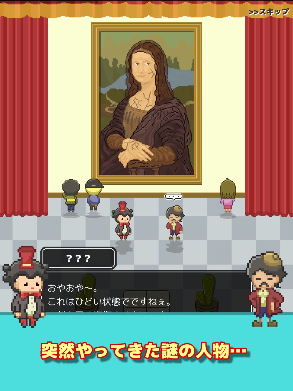 ・上下の美術品をみくらべて、違う場所をタップで修復。