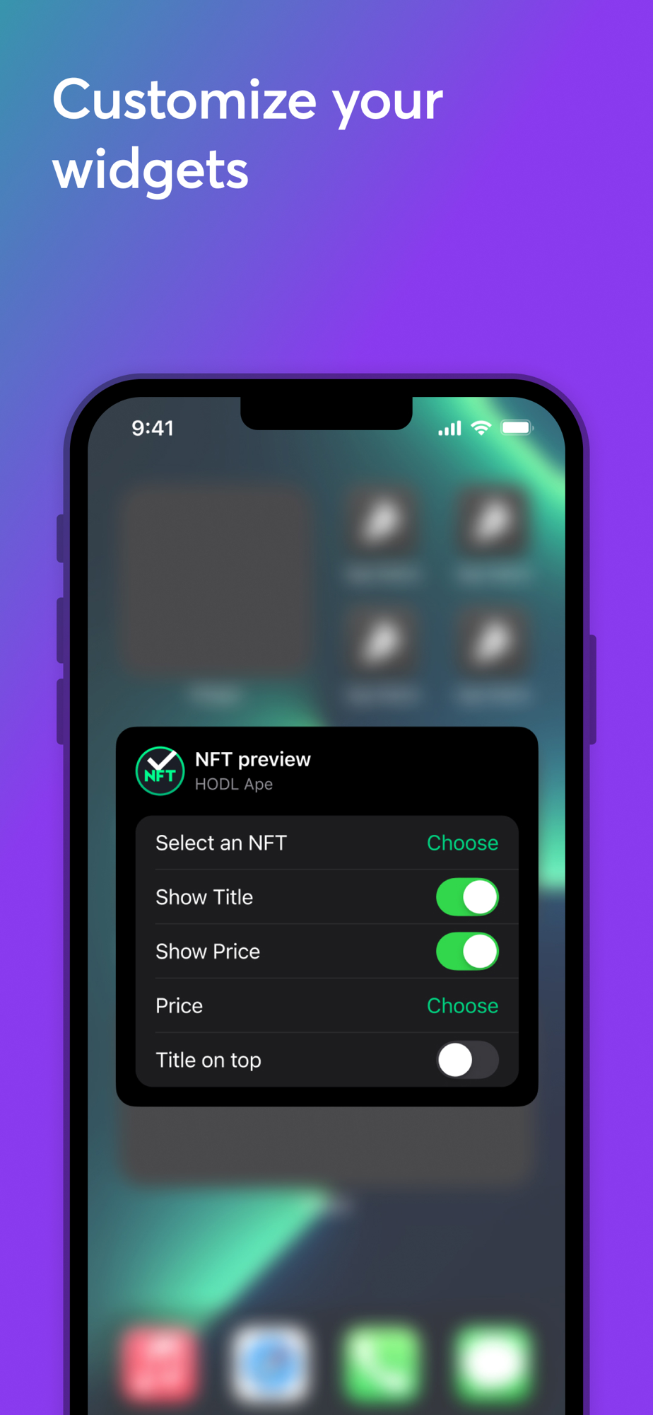 You can customize widgets by choosing to display the NFT title and price.