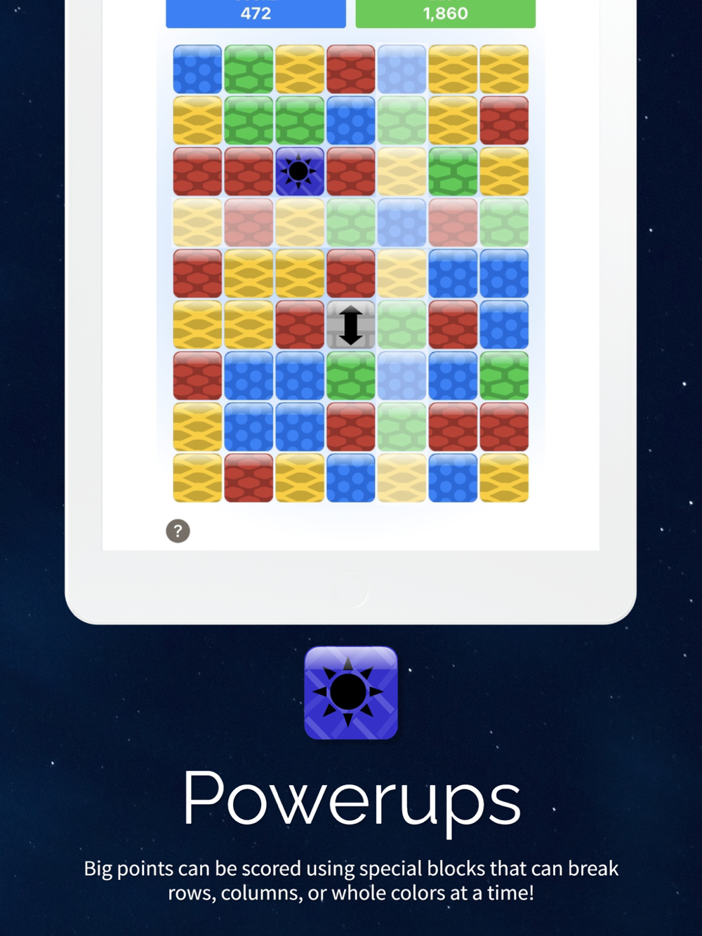 Match 3 or more of the same color and bring mesh icons together to score big points and compete with friends to see who will be the top Mesh Matcher! Become the Mesh Match master by using powerups to break rows, columns, clusters, or an entire color while racing the clock to get the last move in before time runs out.