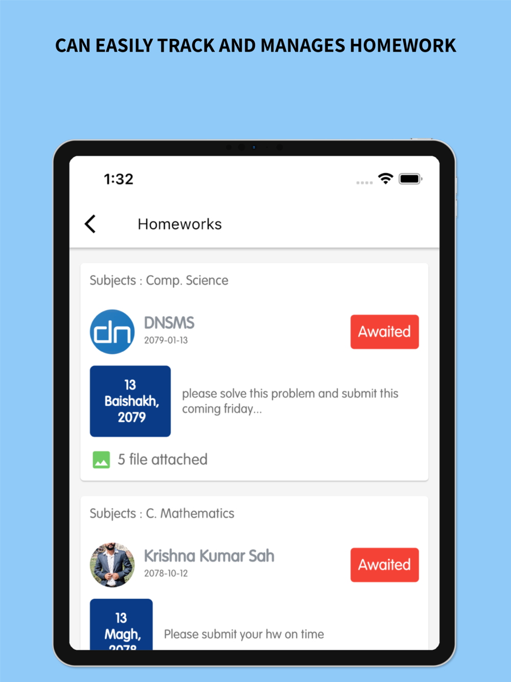 Now you shouldn’t worry if you forgot what your teacher assigned you as homework. You can find all the records of your homework in this app. What you need to do is log in to your Digital Nepal Student App and get the homework list on your mobile screen.