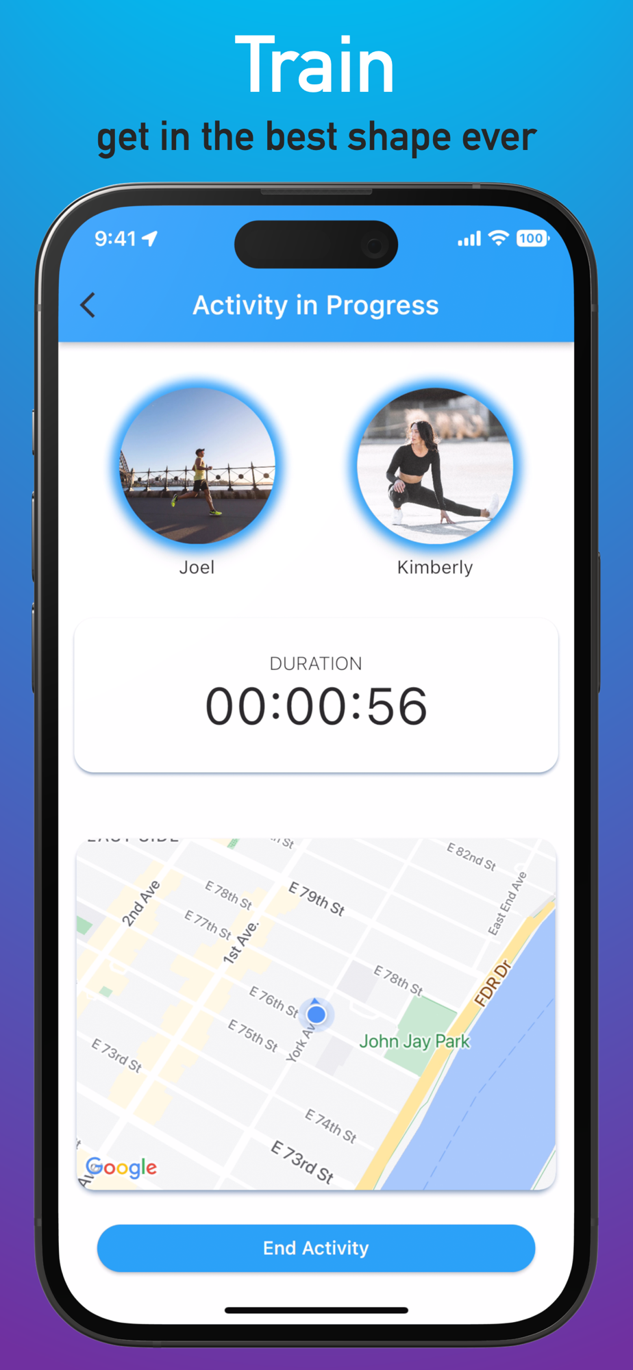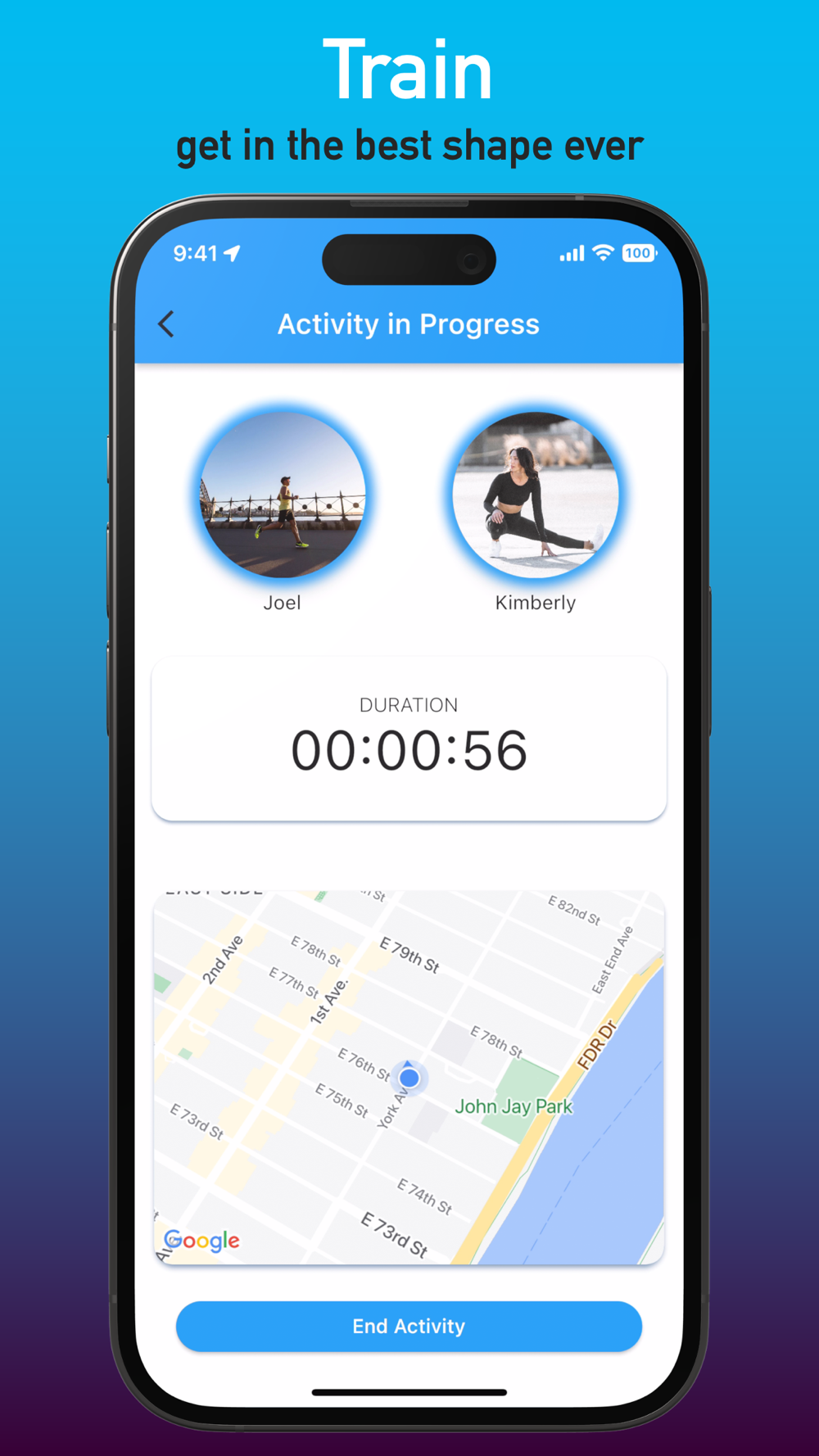Our app makes it easy for you to create or join fitness activities nearby, connect with personal trainers, and meet new fitness-focused friends.