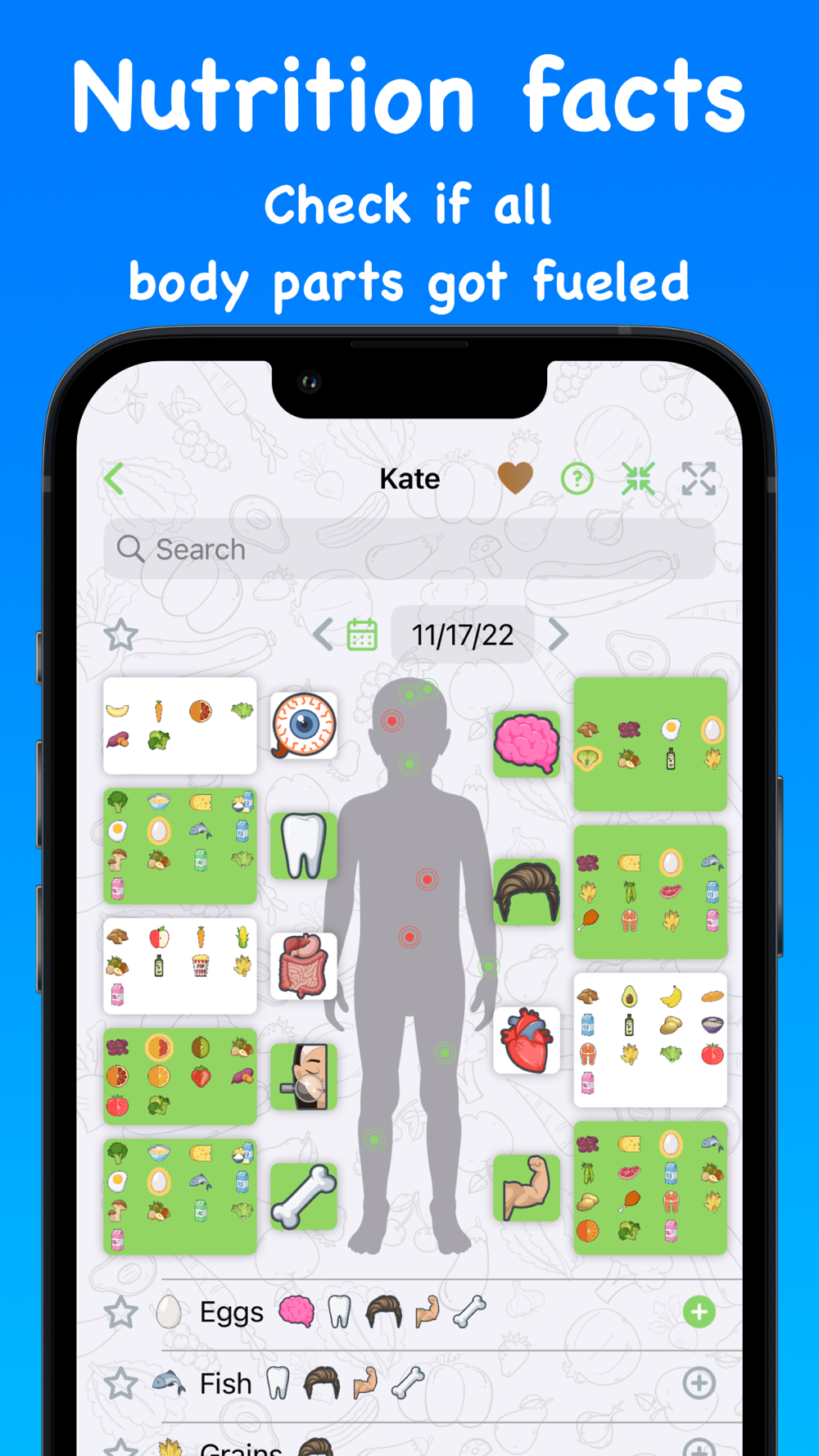 ● Track the foods you have eaten every day and the progress you made for the body parts