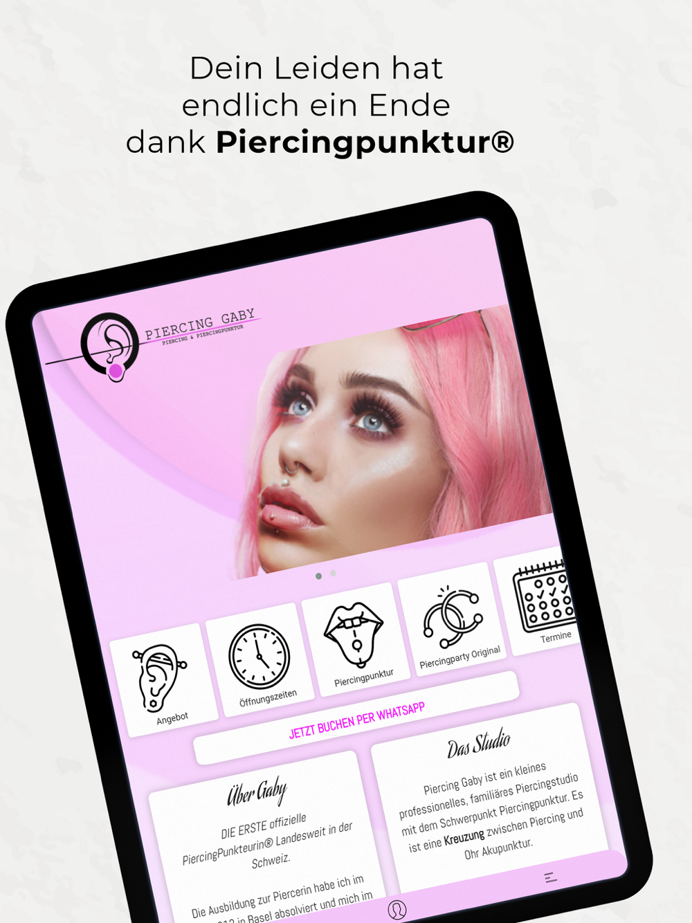 Mit der Piercing Gaby App hast du meine Webseite auf deinem Handy ganz schnell griffbereit. So kannst du z.B ganz bequem Termine buchen.