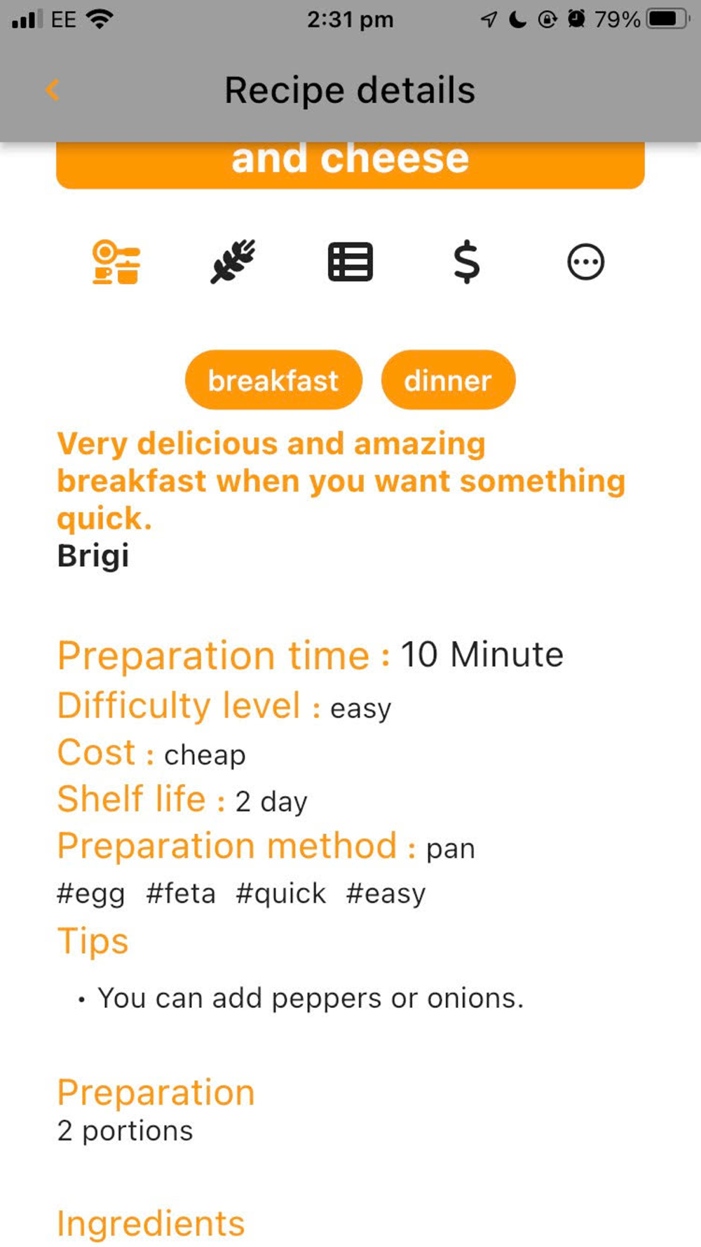 The main purpose of the app is to share healthy recipes with details like steps and photos, preparation time, reviews and more tips. The daily intake can be managed with a calendar. Advanced search for recipes is provided. You can work together with others!