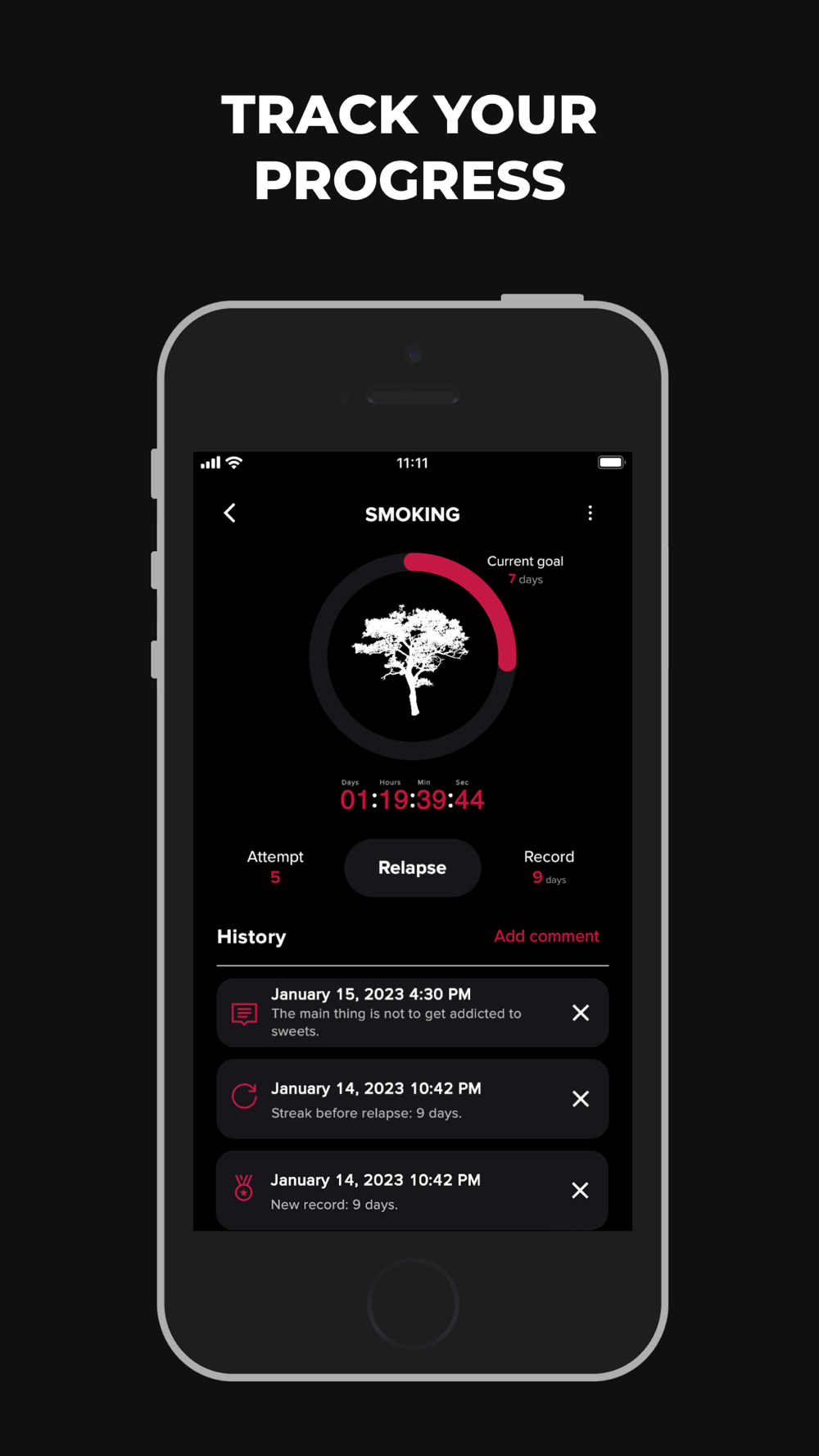 Moreover, our app is your motivator and guide, constantly setting new, achievable goals to keep you on track. It's time to regain control of your life and put a halt to those addictive behaviors that have been holding you back.