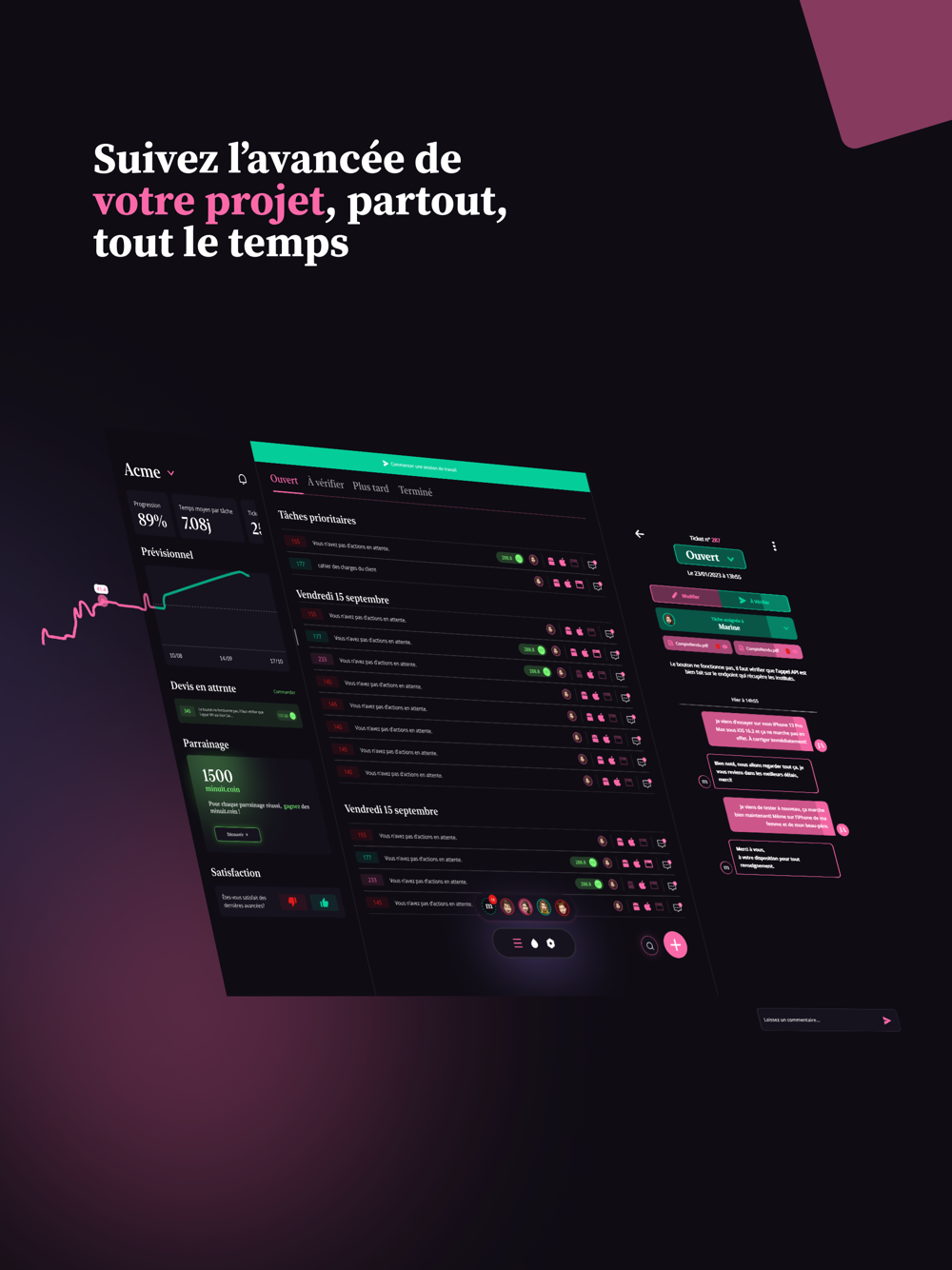 Restez connecté et recevez des notifications à chaque avancée de votre projet. Vous ne manquerez plus jamais une étape importante !