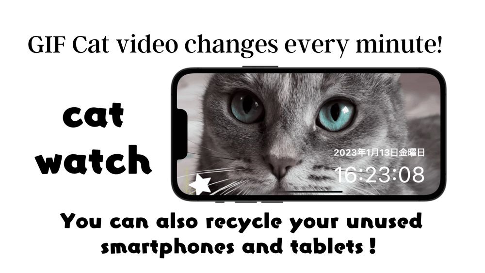 This app displays the time using the device's time settings. In addition, the cat image changes automatically every 60 seconds.