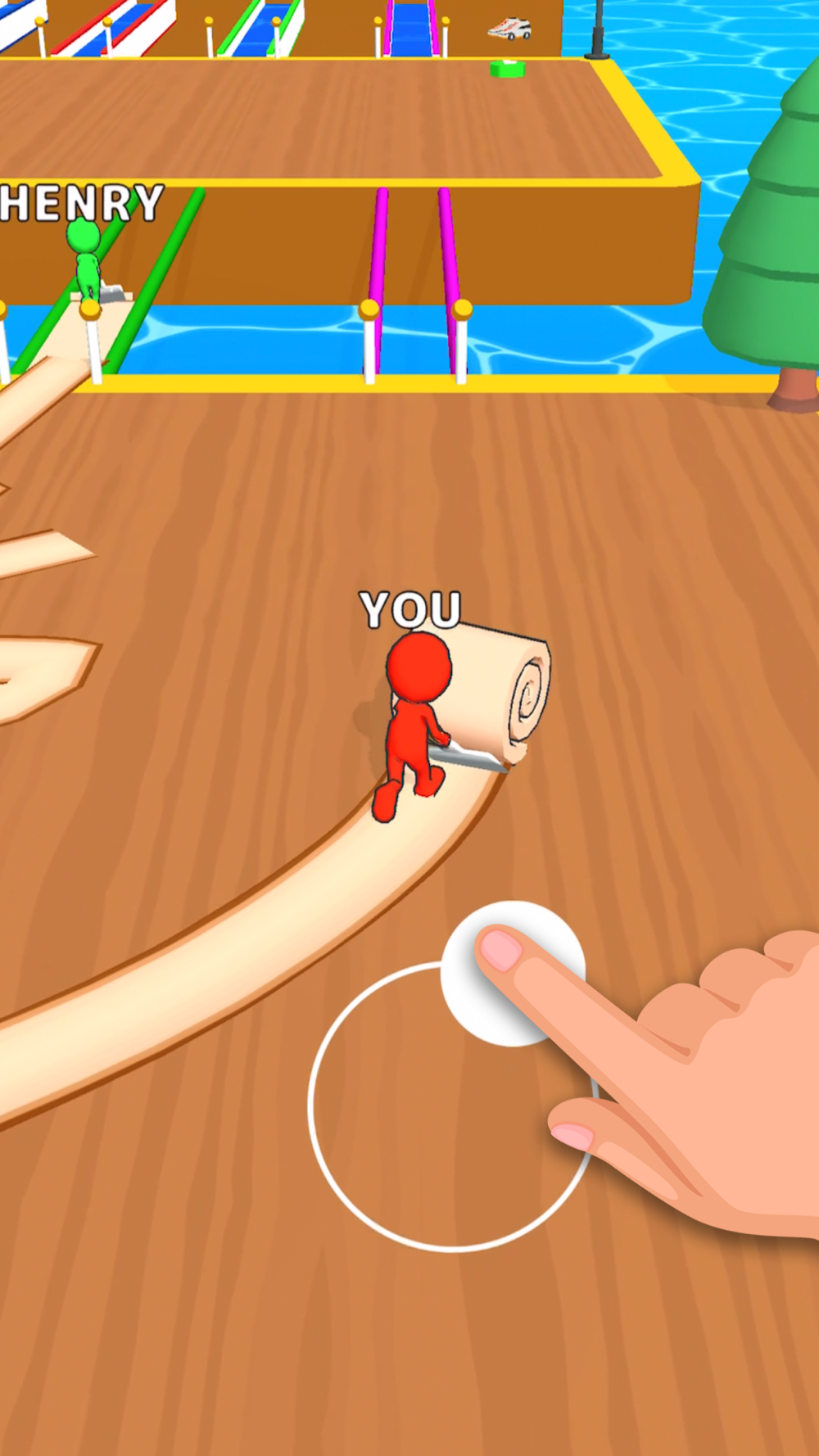 In this game, you have to drive the shaved tree over a bridge to reach the goal! You have to shave trees efficiently to reach the goal and go faster than the other players!