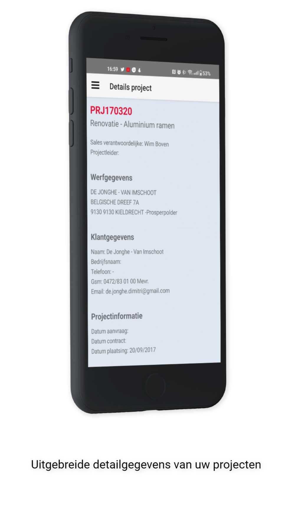 - Neem foto's op de werven en integreer deze direct in uw projecten