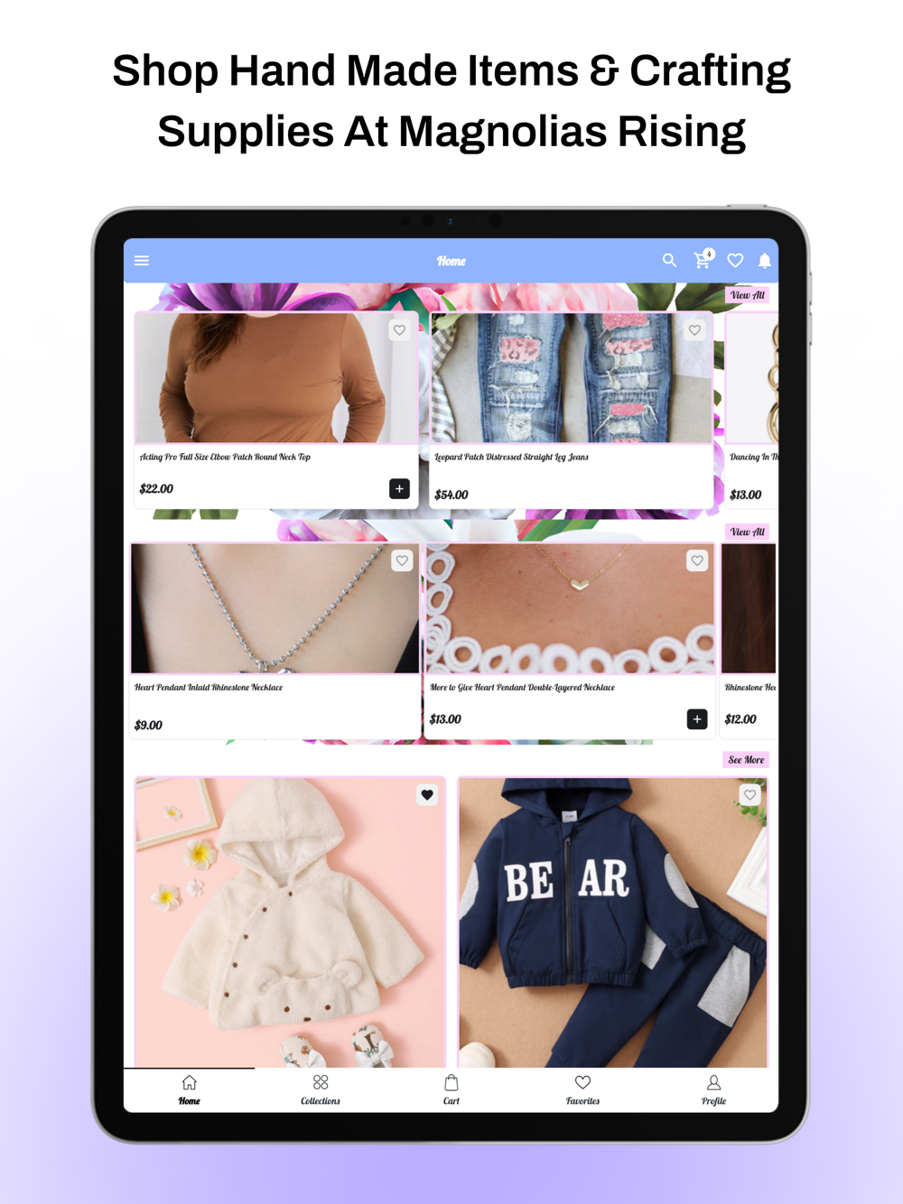 This app is Magnolias Rising online store. We created this app to allow you easier access to the site.