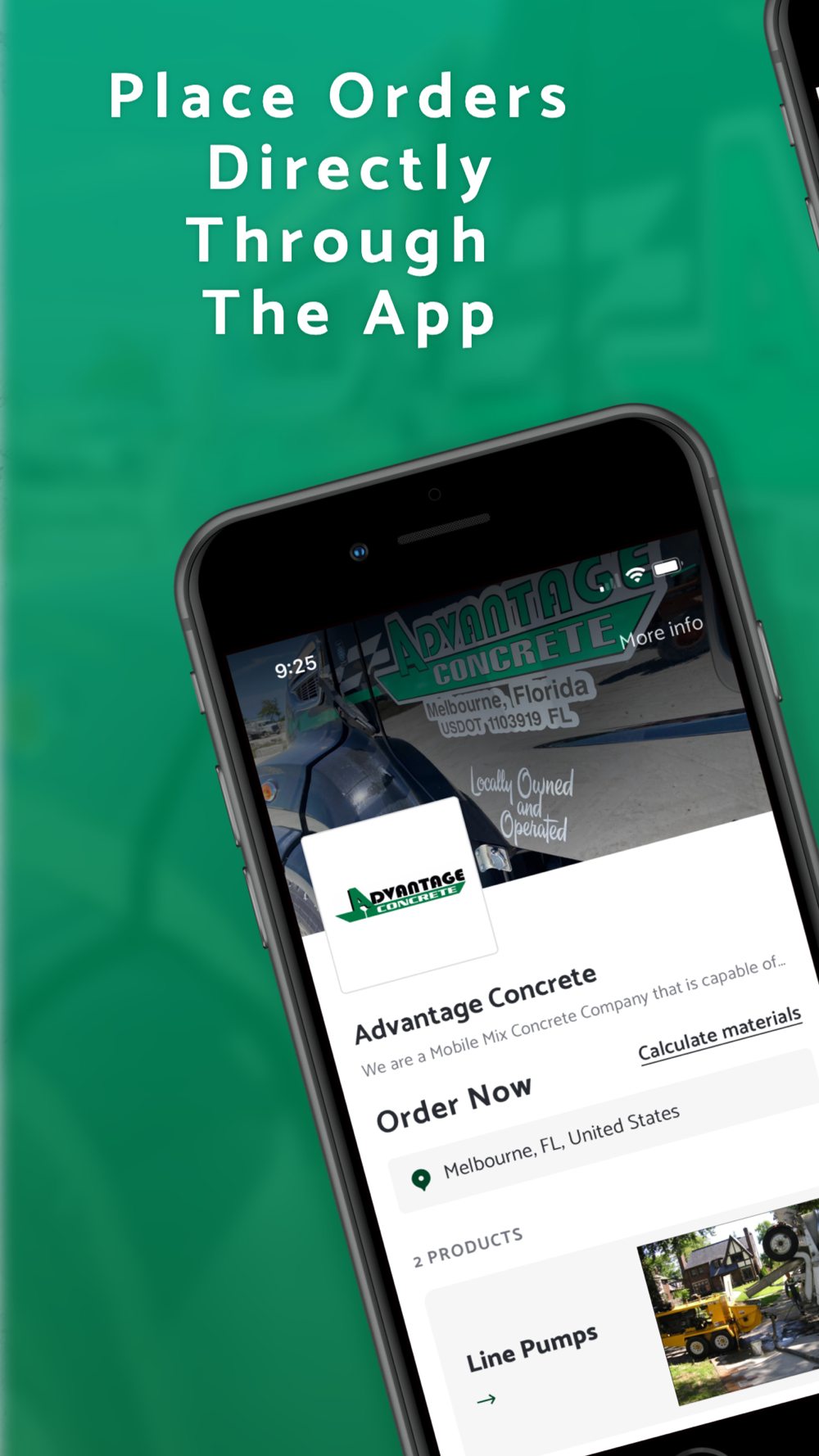 Download the app and order, track and manage your line pump bookings and concrete deliveries in real-time. Advantage Concrete is now giving contractors the ability manage their orders, chat directly, view invoices, make payments and more - directly from the app!