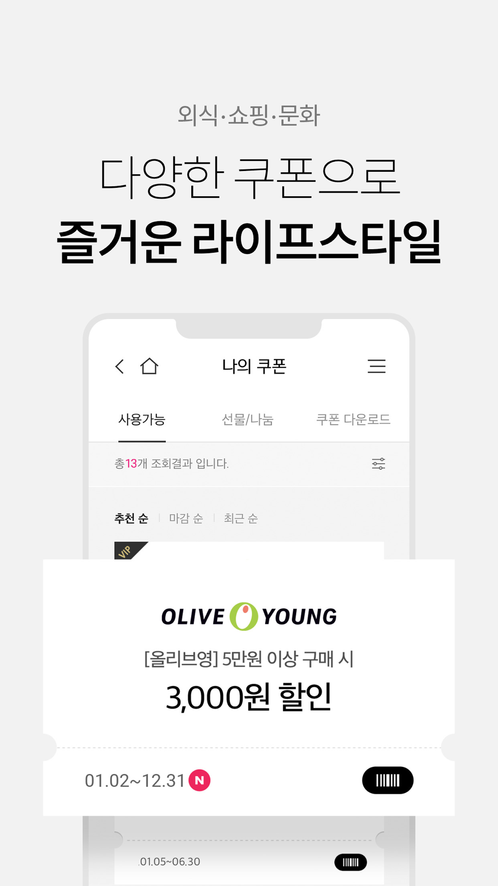 외식, 쇼핑, 문화 등 여러 분야의 쿠폰을 앱에서 확인하고 사용해보세요.