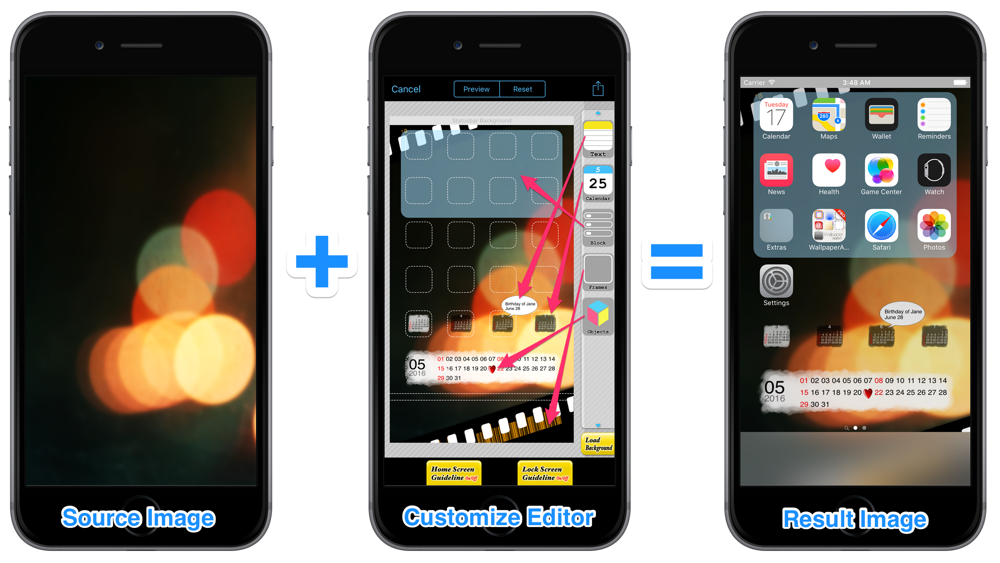 - Using many objects and image effects and icon backgrounds, you can make scores of thousands of wallpapers.