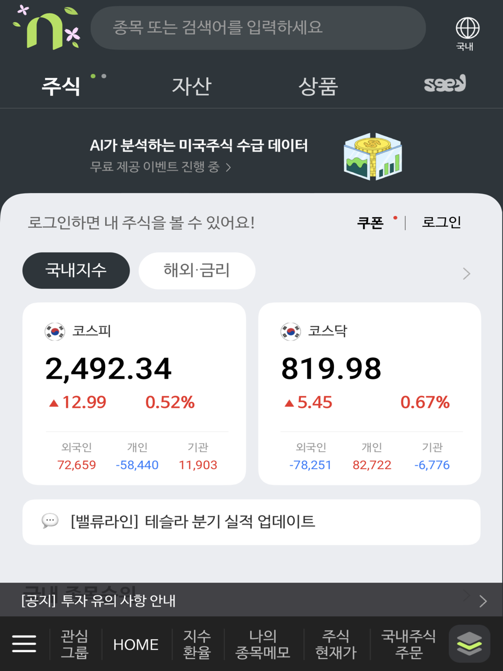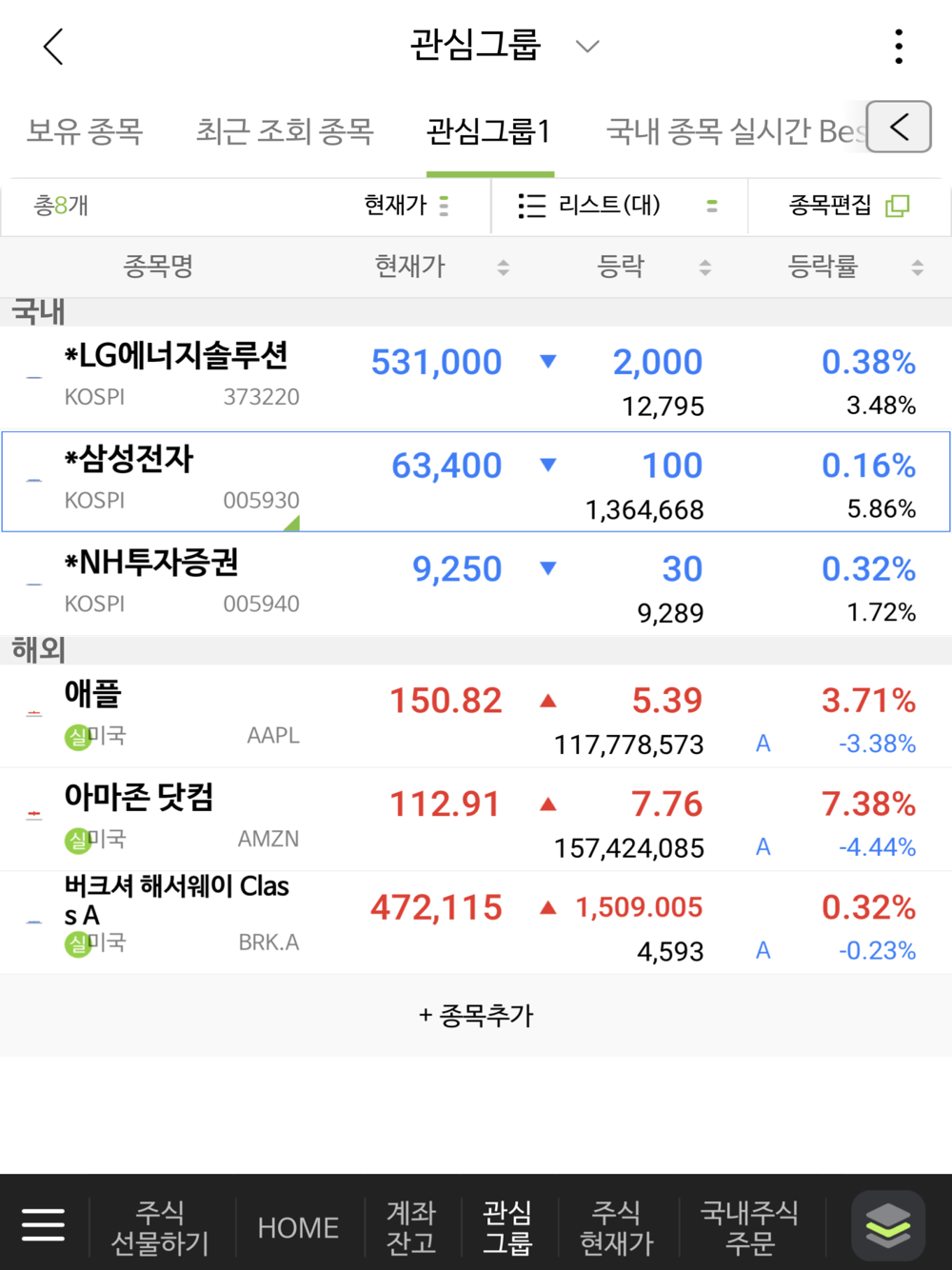 관심그룹에 등록한 지수와 종목을 확인할 수 있어요!