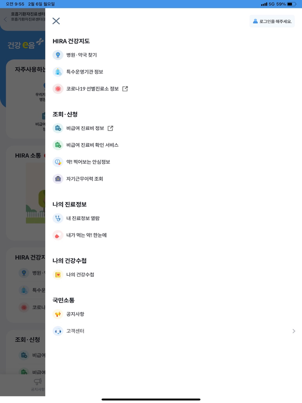 7. 내 진료정보 열람: 내가 낸 진료비, 총 진료비 등과 진료내역, 처방조제내역 등의 정보를 확인할 수 있는 서비스