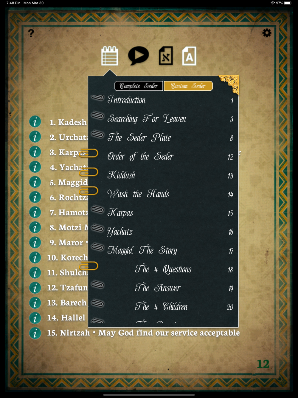 •In contrast to other Passover apps, a traditional book format that replicates the experience of leafing through a Haggadah.