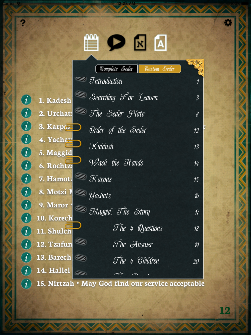•The ability to customize the length of the Seder if young children are present.