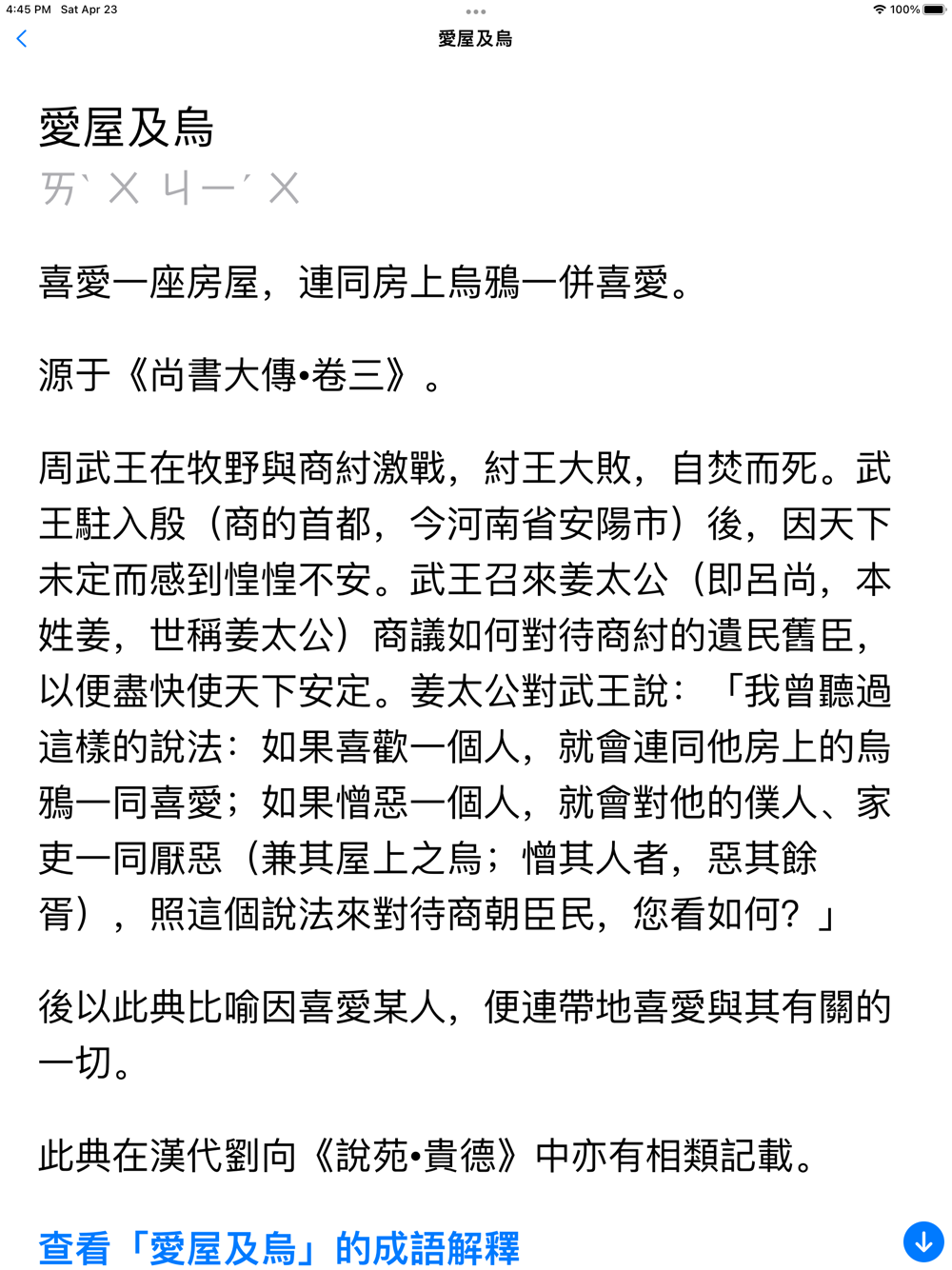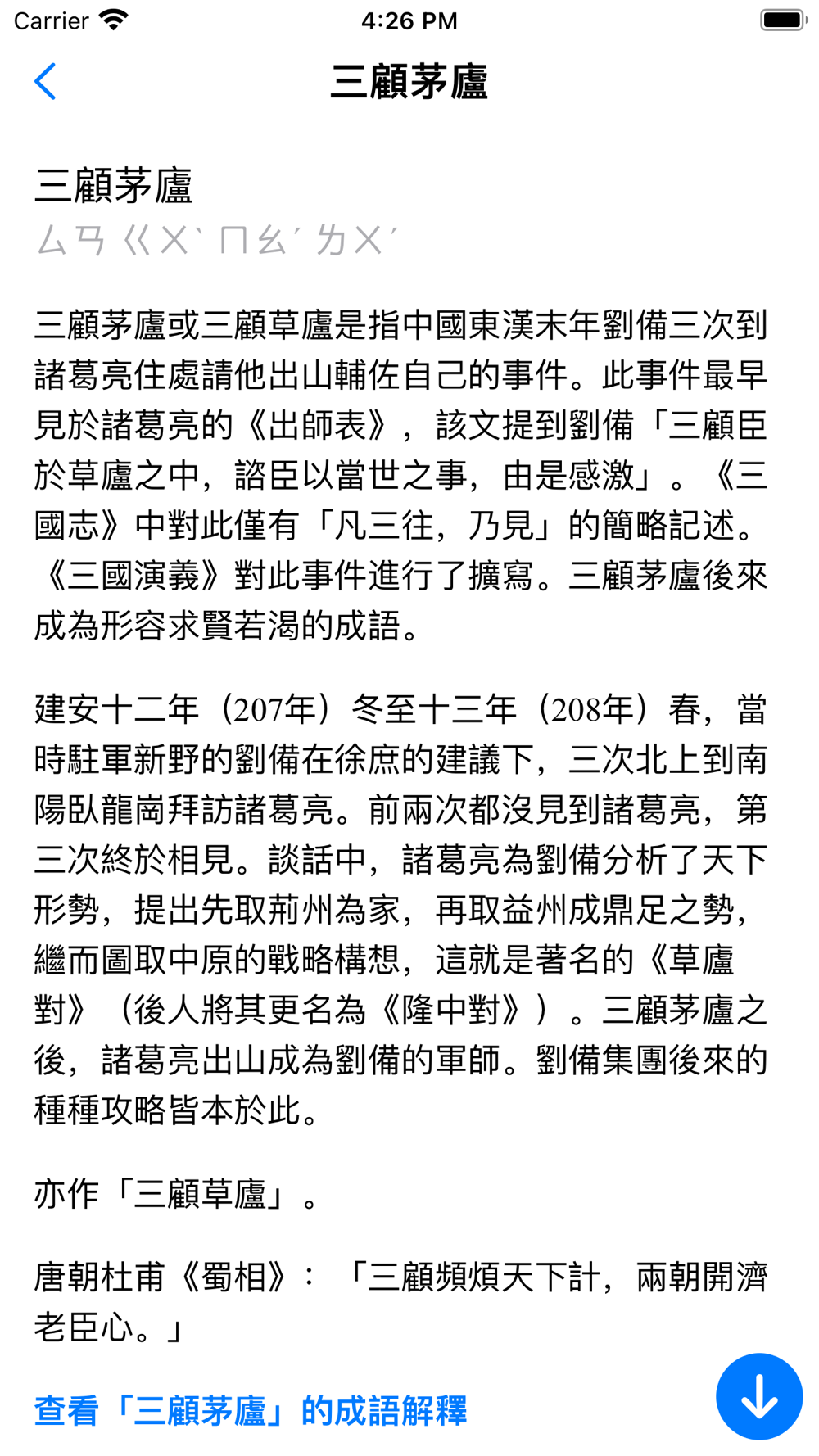 要查詢更豐富的條目,請安裝本作者開發的《成語辭典》。