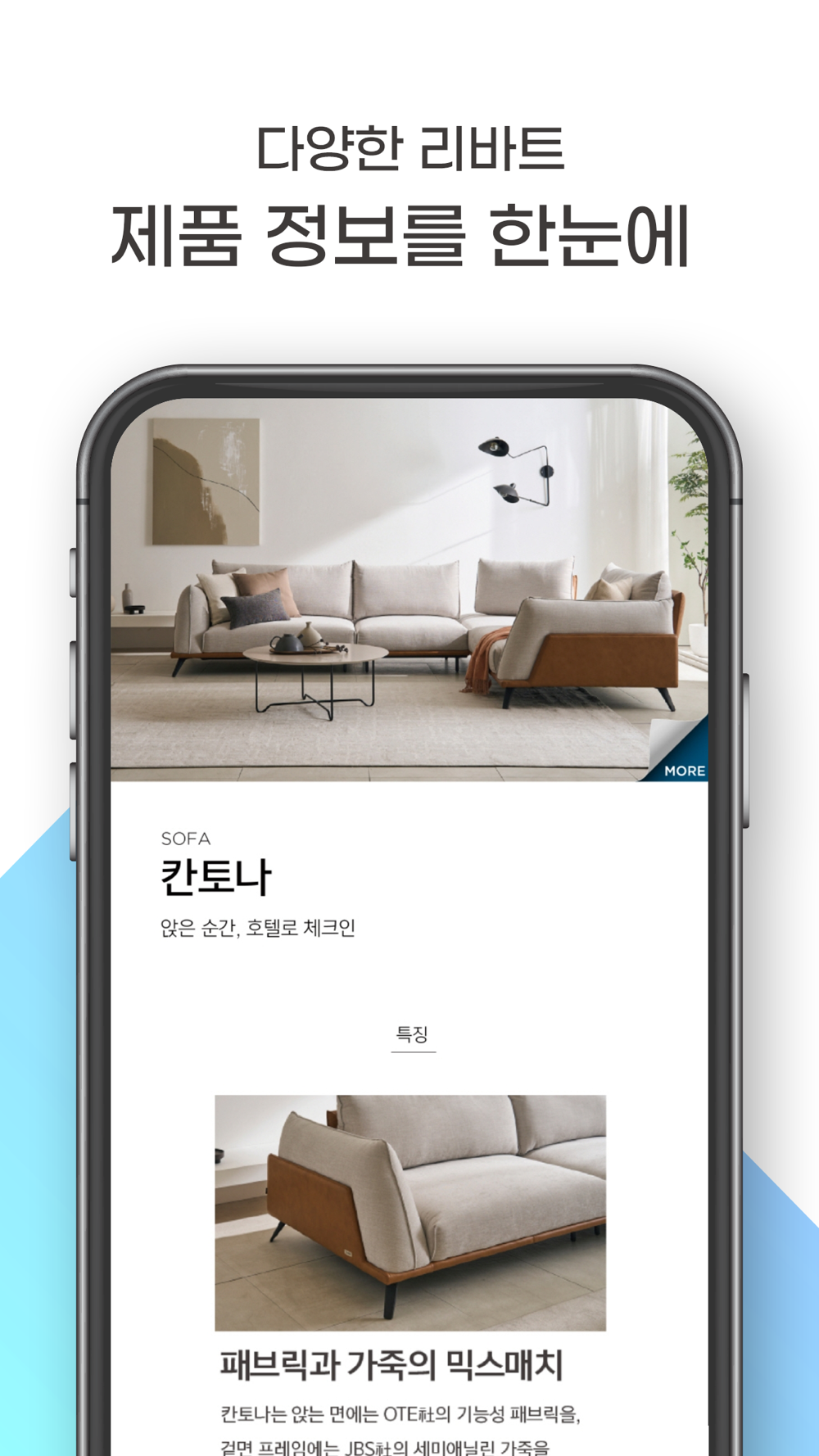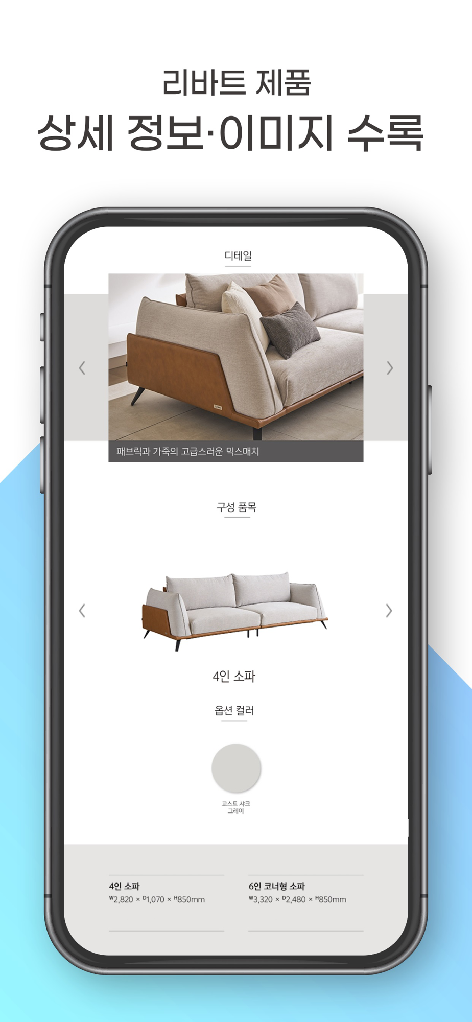 리바트의 최신 제품과 정보들을 리바트 제품 카탈로그 앱으로 확인하세요.
