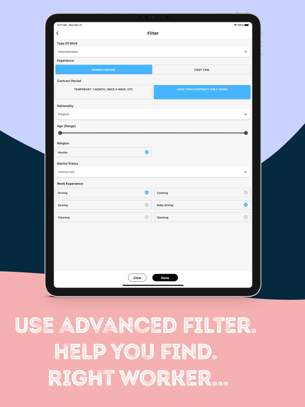 برنامج العمالة المنزلية حيث يمكنك البحث عن العمالة المناسبة لك