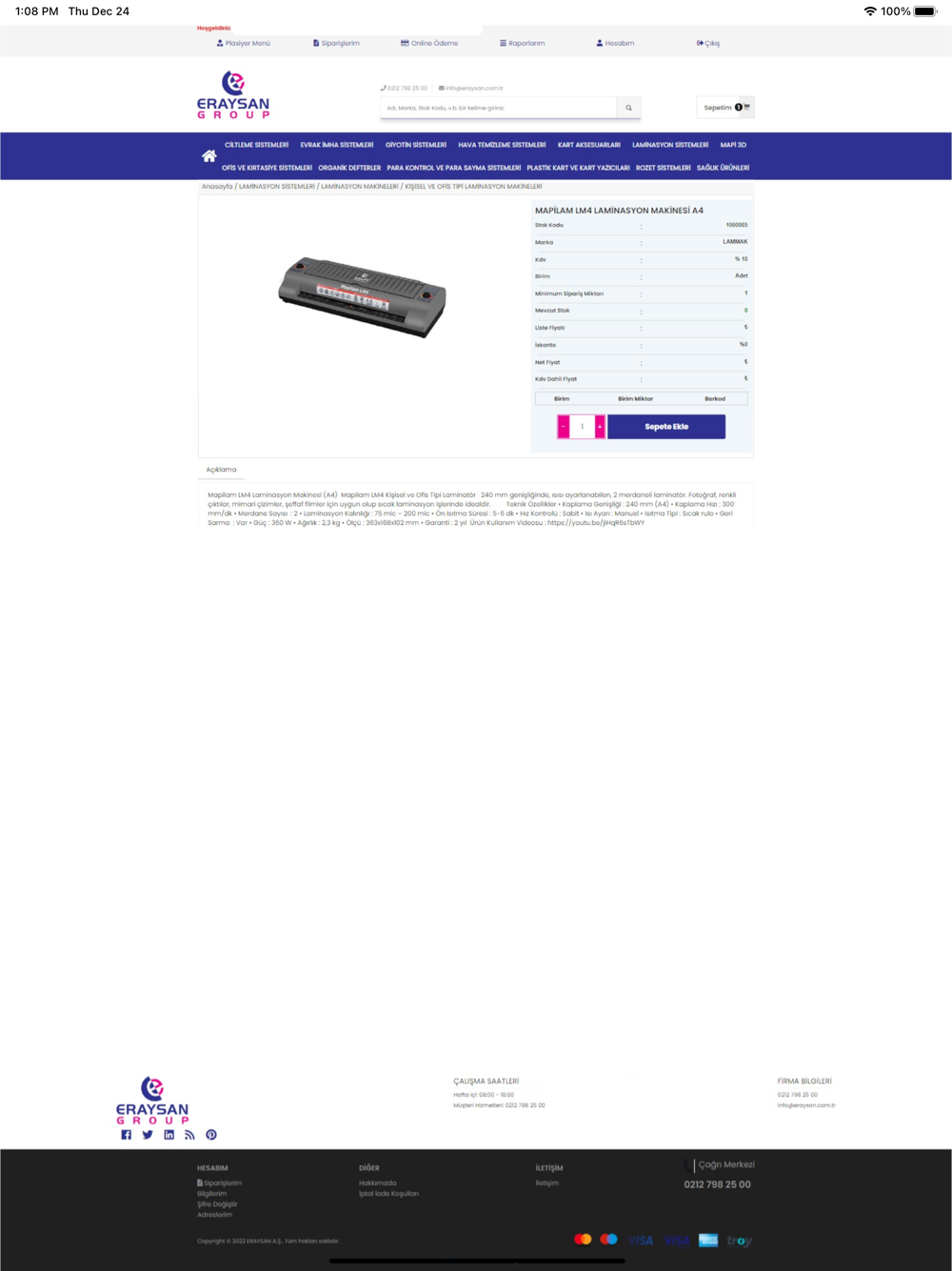 Eraysan B2B uygulaması hızlı arayüzü ve kolay kullanımı ile fark yaratıyor.
