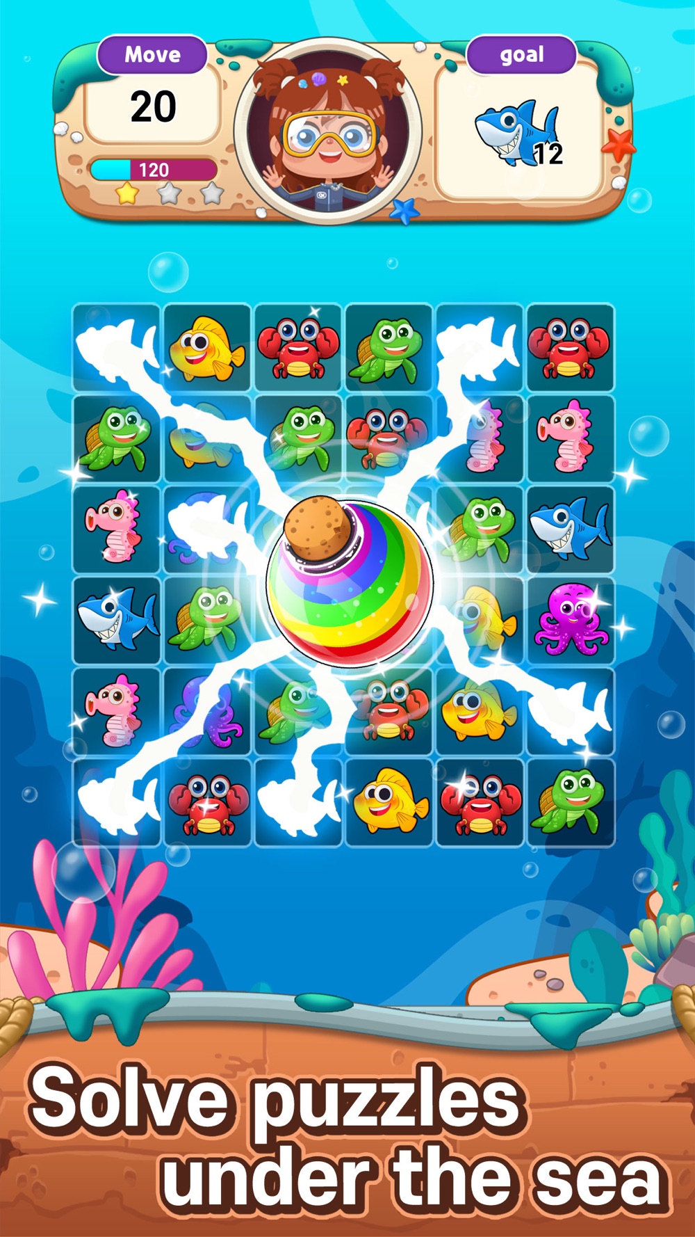 Change and match cute underwater friends, solve various missions, and enjoy the joy of victory!