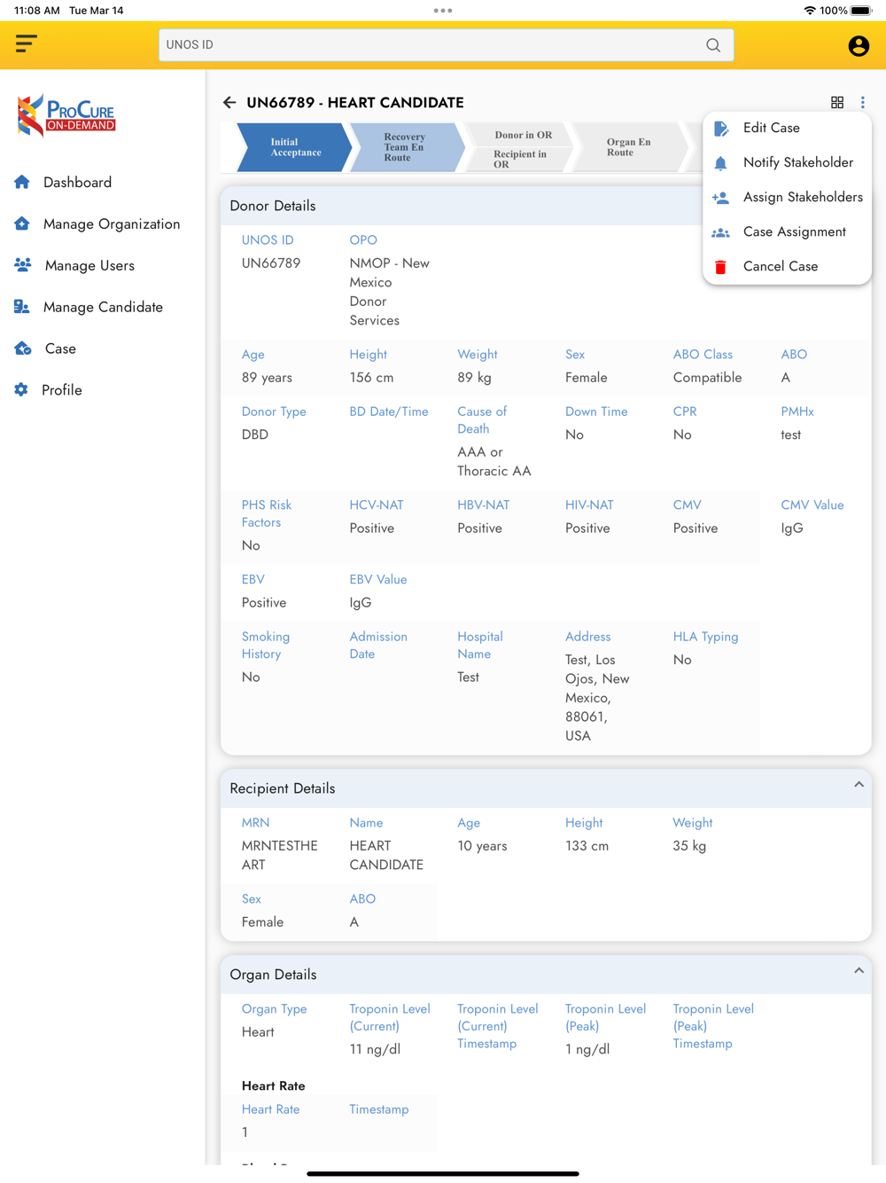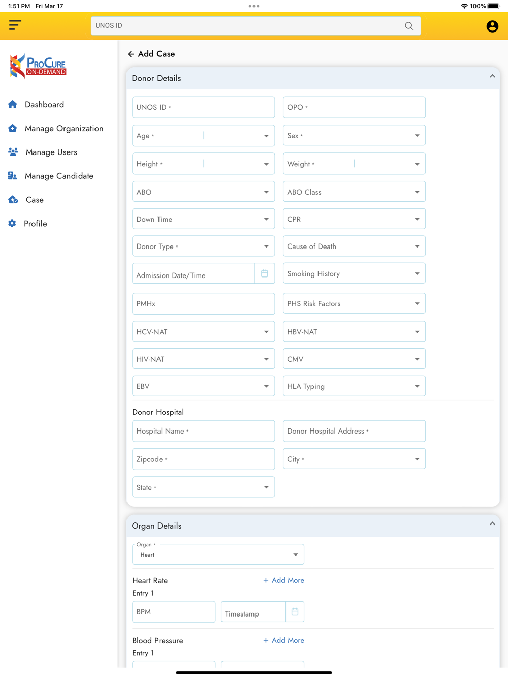 A high fidelity, user-friendly app that dramatically improves the quality, accuracy and timeliness of transplant-related data; real-time geotracking of the organ and procurement team; and communication between the numerous stakeholders throughout the procurement process.