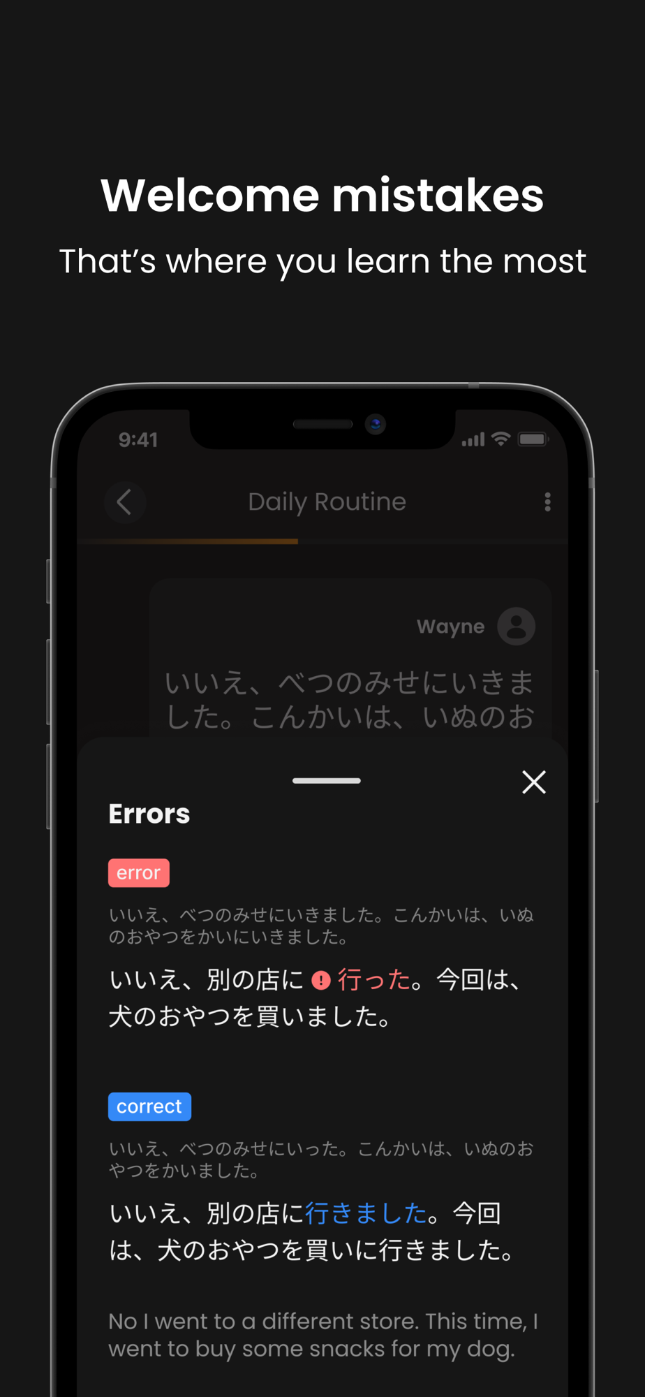 You can also easily look up words you don’t know during the conversation and review them afterwards with our flashcard system.