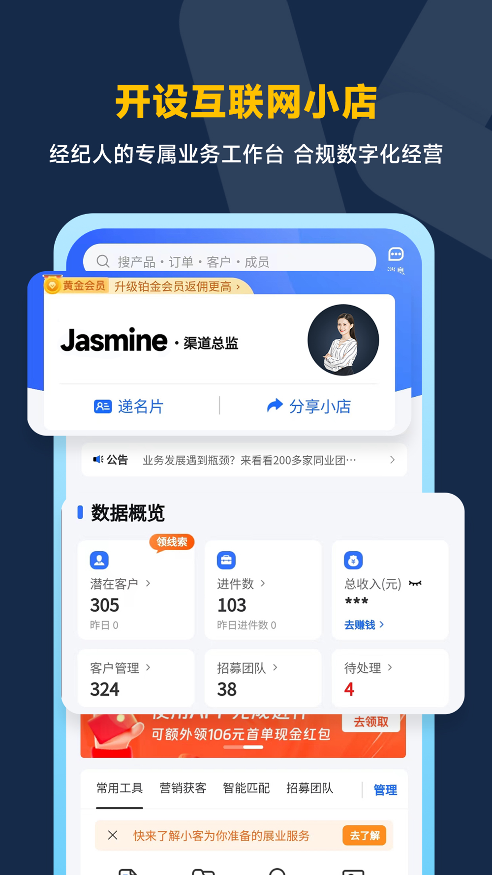 客一客APP是一款专门为居间经纪人打造的营销获客开单工具,每天更新海量客户、人脉、业务线索等您领取,提供给您完善的营销指引与开单工具,助您发展全国业务,打造您自己的经纪人铁军团队。平台更有多重奖励活动,助您随时随地创收!