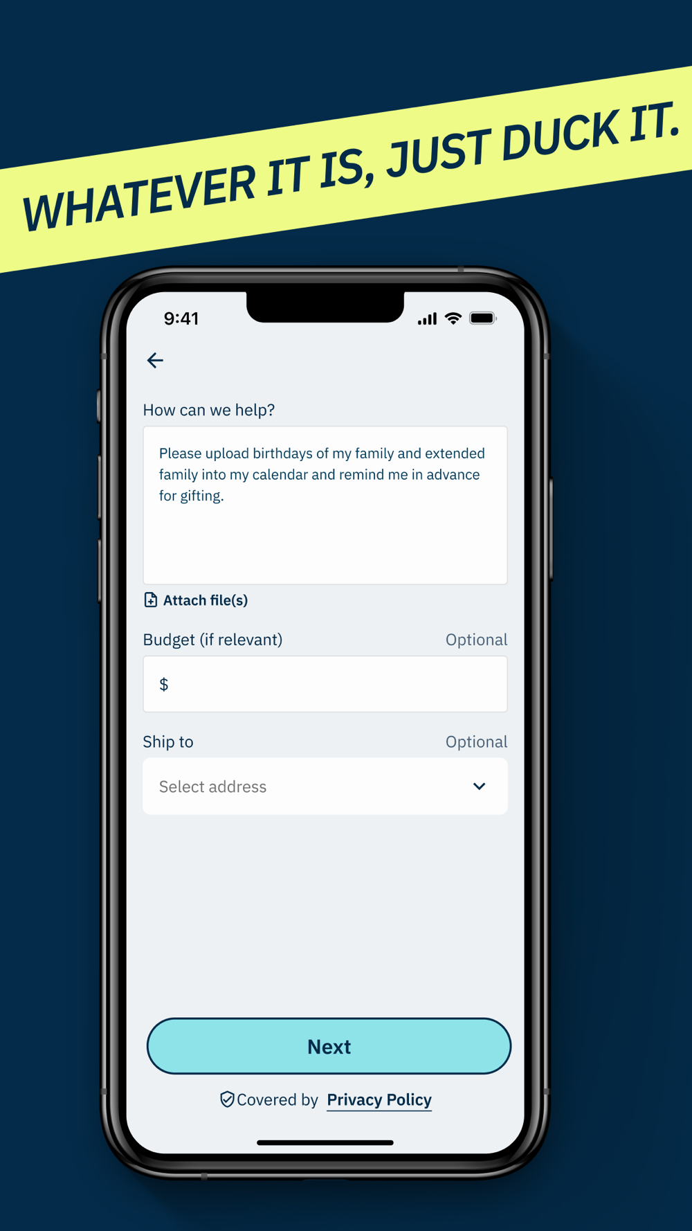 - Give Duckbill your tasks - app, email, text, web - we take them all (just duck it)