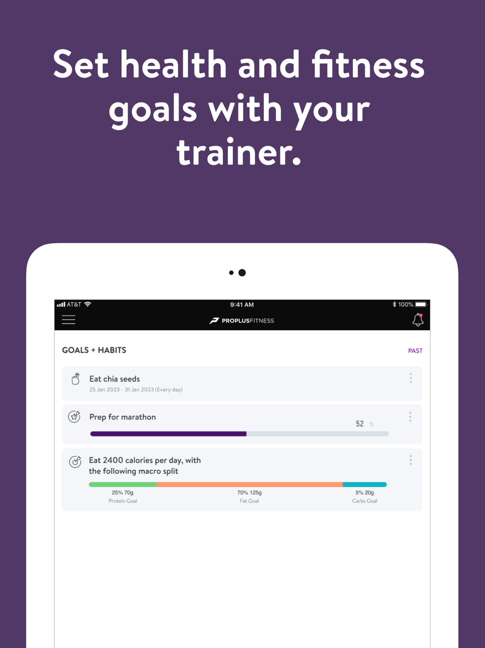 With the Proplus Coaching App, you will have access to workout programs designed specifically to help you reach your fitness and health goals! You can follow & track your workouts, your nutrition, your lifestyle habits, measurements and results–all with the help of your coach.