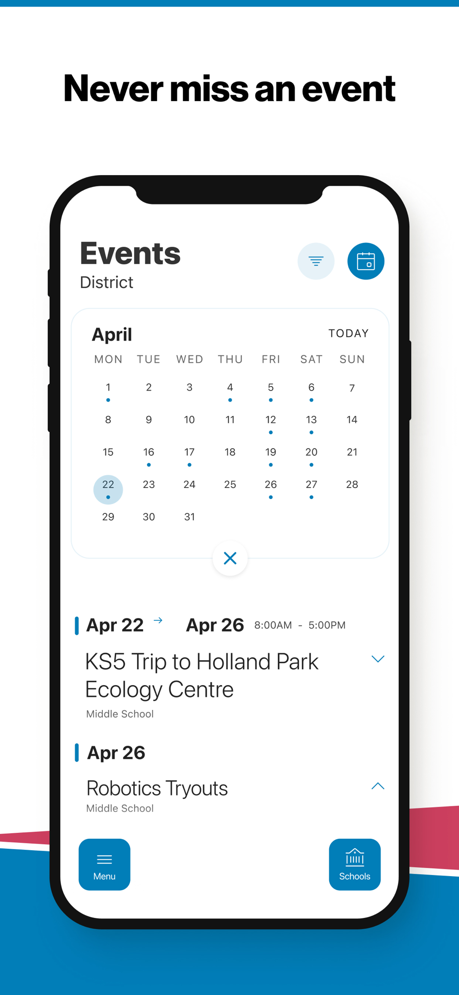 NEVER MISS AN EVENT
