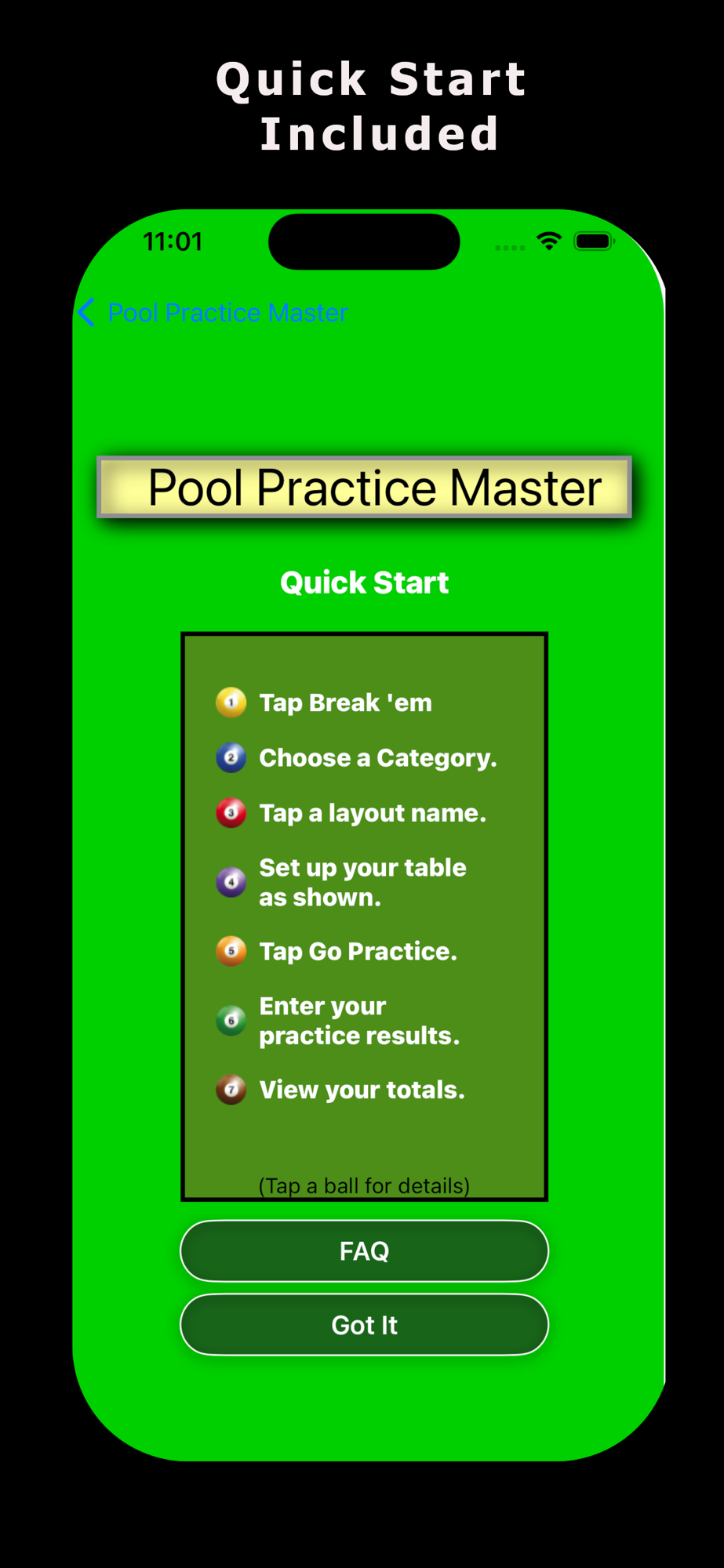 By using Pool Practice Master consistently you will improve your game and be on the way to advanced play.