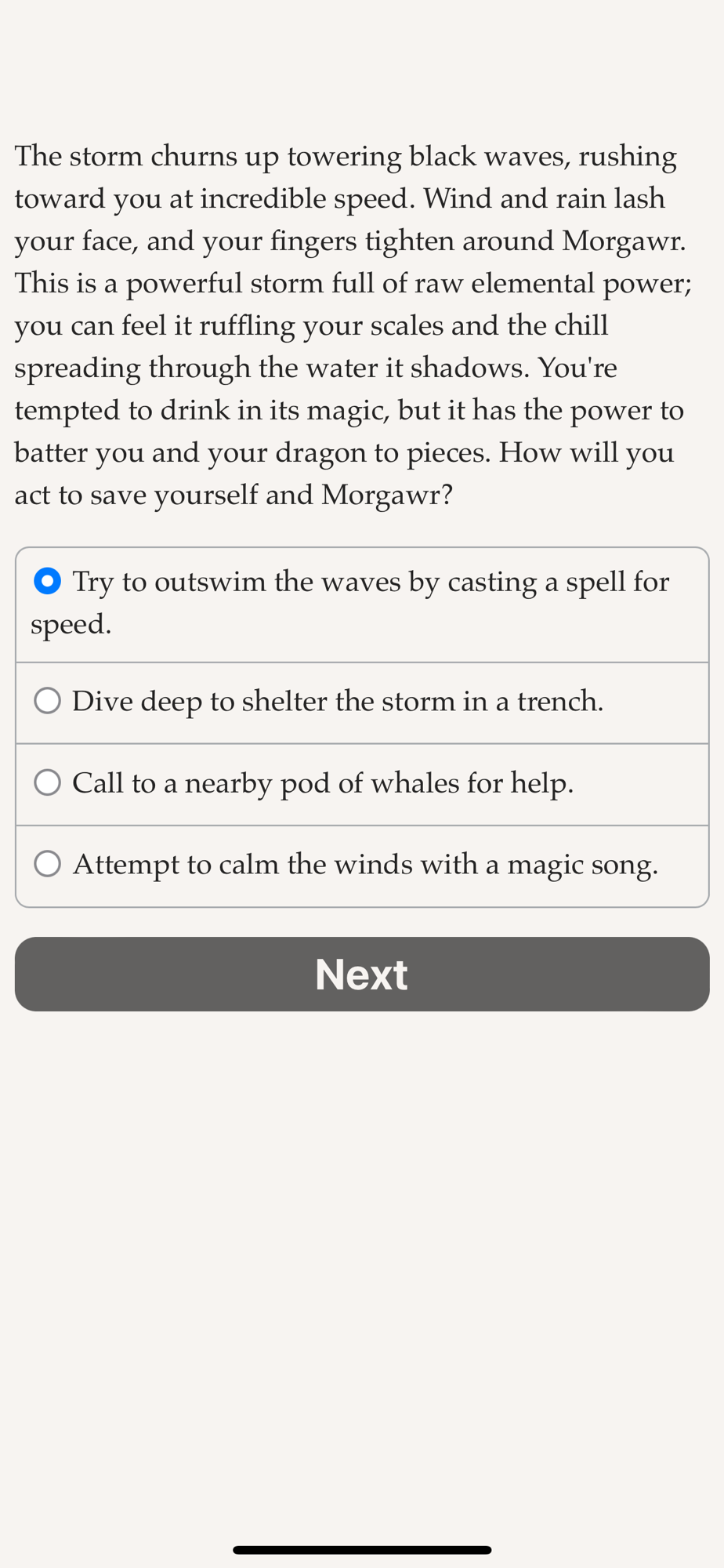 * Choose your magical specialty: storm magic, animal communication, or tide magic! Or focus on defending yourself with your spear, or searching for buried treasure.