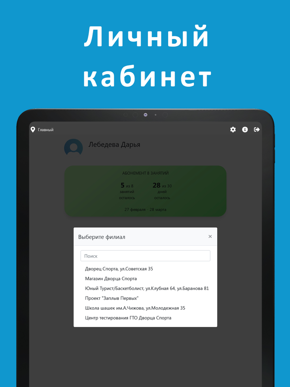 Приложение для просмотра расписания, действующего абонемента, посещений и записей на занятия.