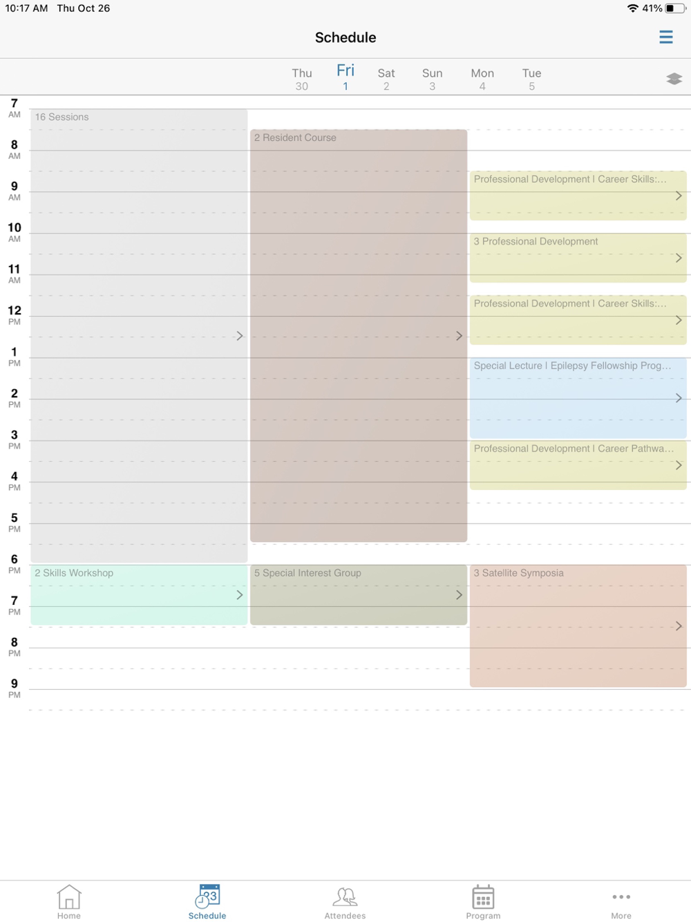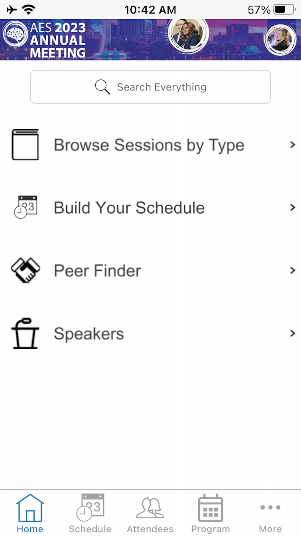 • Program: Browse the entire event program to build your personal schedule, bookmark sessions or speakers, or access session handouts as available.