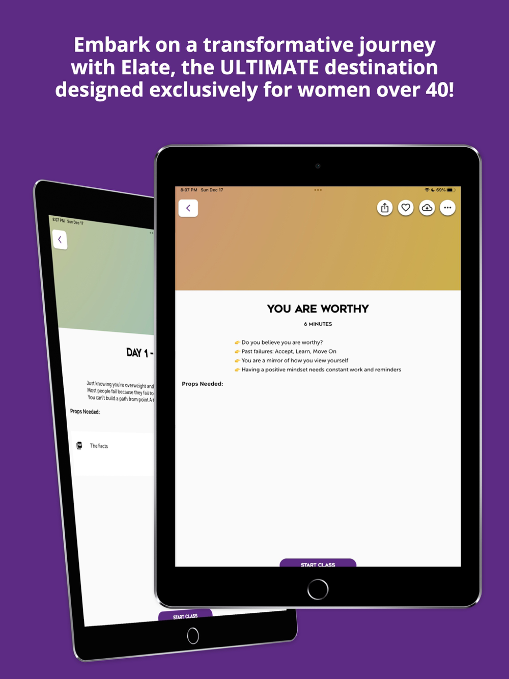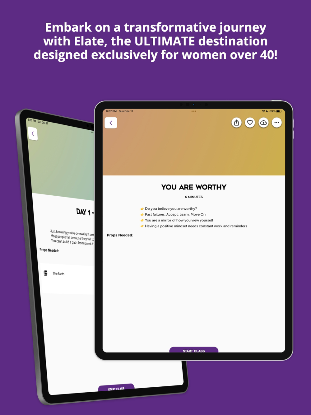 Embark on a transformative journey with Elate, the ultimate destination designed exclusively for women over 40. Whether you're navigating the nuances of menopause, seeking to reshape your body, or aiming to achieve a holistic sense of well-being, Elate stands by you.