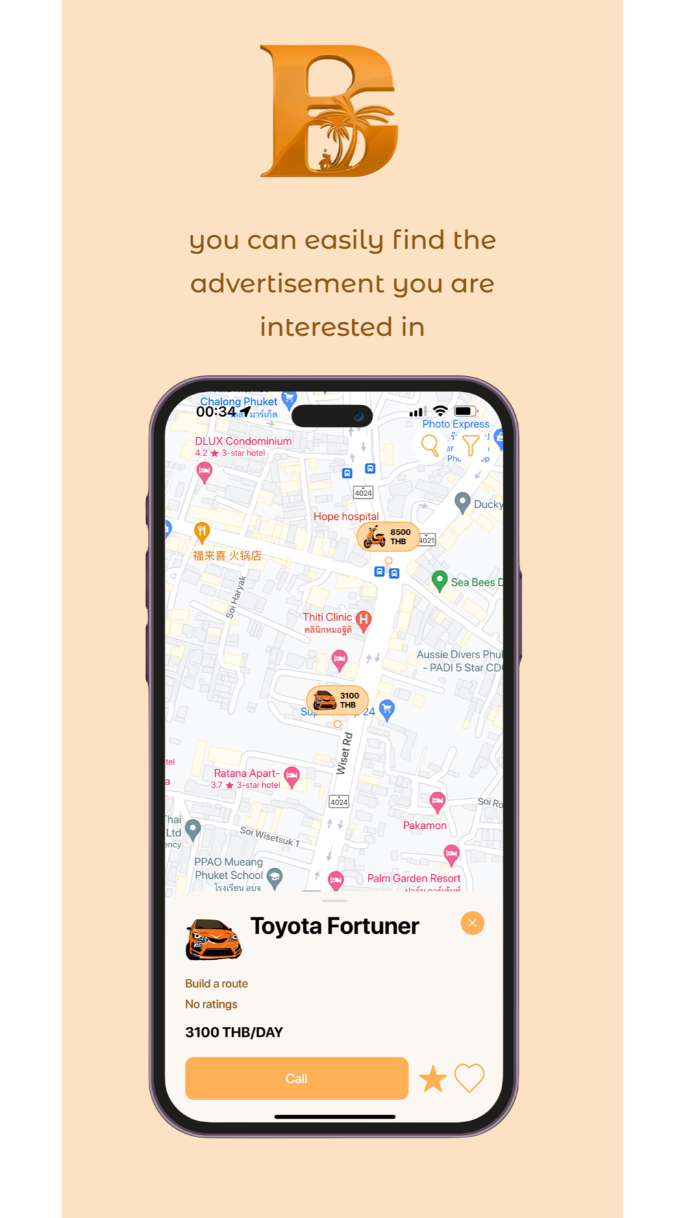 The application offers a vast selection of verified ads for free. Every user can both rent and offer vehicles for rent ABSOLUTELY FREE. Renting a vehicle takes just 2 clicks. The app is localized in 4 languages - Russian, English (UK and USA), and Thai. You get a 100% guarantee, as all ads undergo moderation.